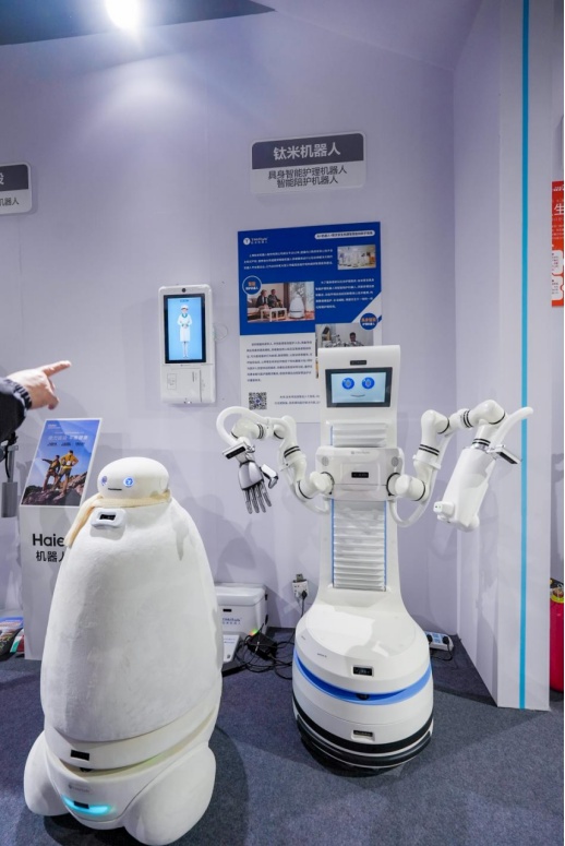 在AWE2026首次设立的银发经济展区,钛米机器人展现的是对“银发族”的温柔守护。其带来了两款重磅产品:智能陪护机器人以多模态交互建立情感联结,能主动感知老人的情绪与上下文,提供个性化陪伴;同时可监测体征及跌倒风险,实现健康预警。而具身智能护理机器人则融合体温、血压等多种体征数据采集功能,支持远程问诊和康复训练引导。工作人员介绍:“我们希望做到‘陪伴有温度,陪护有专业’。”作为国家级“专精特新”小巨人企业,钛米机器人已为600多家大型三甲医院提供智慧医院建设服务,如今正将这些能力迁移到居家养老场景中。