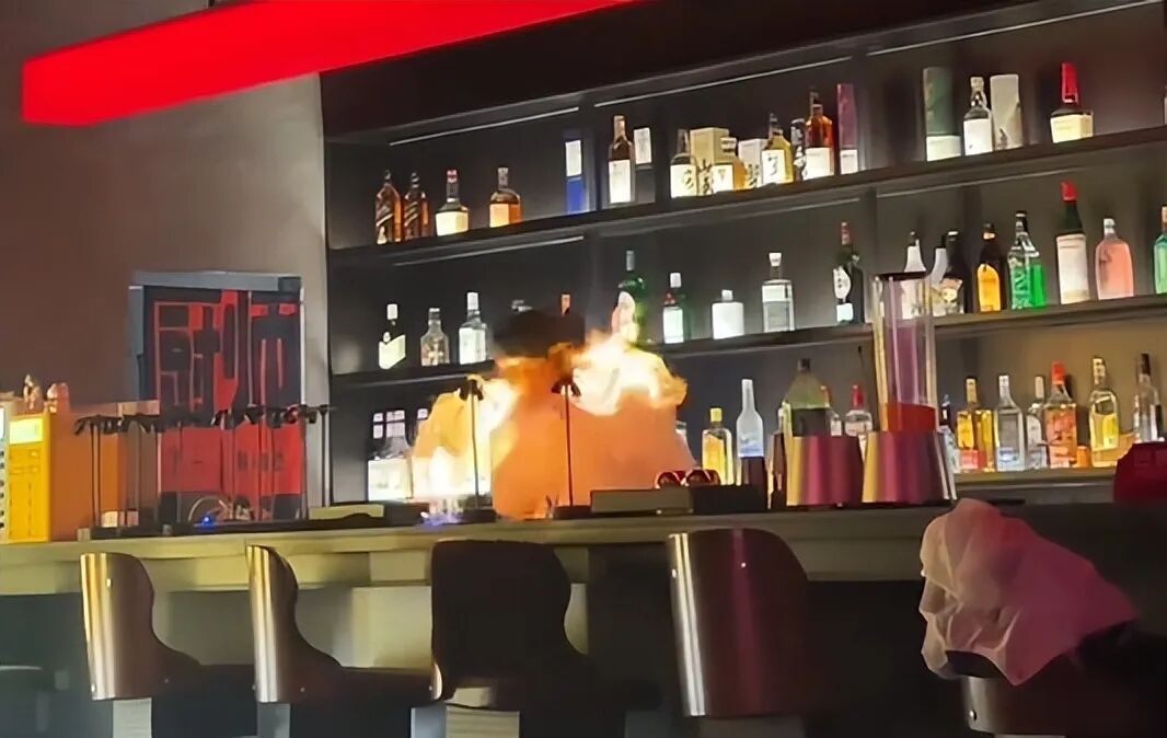 2025年9月,一位辽宁网友发布视频,铁岭一家酒吧疑似调酒师在吧台进行喷火表演失误。