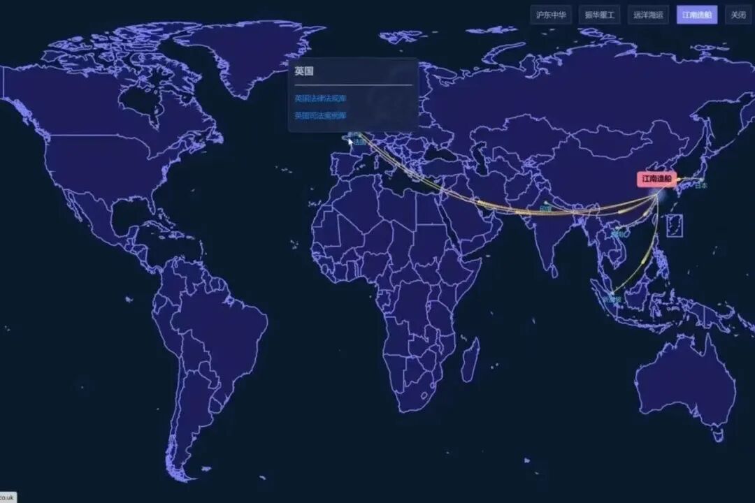 如果说手册是静态的“地图”,那么崇明区检察院正着力打造的智慧检务平台,则是一个动态的“预警系统”。运用大数据与可视化技术,该院研发了海装企业专属法治体检平台。平台以交互式世界地图为主界面,接入主要贸易国法律法规库、经典海事海商判例、国际贸易政策动态等多维度信息,实现“点击目标地区—生成风险清单+应对建议”核心功能。
