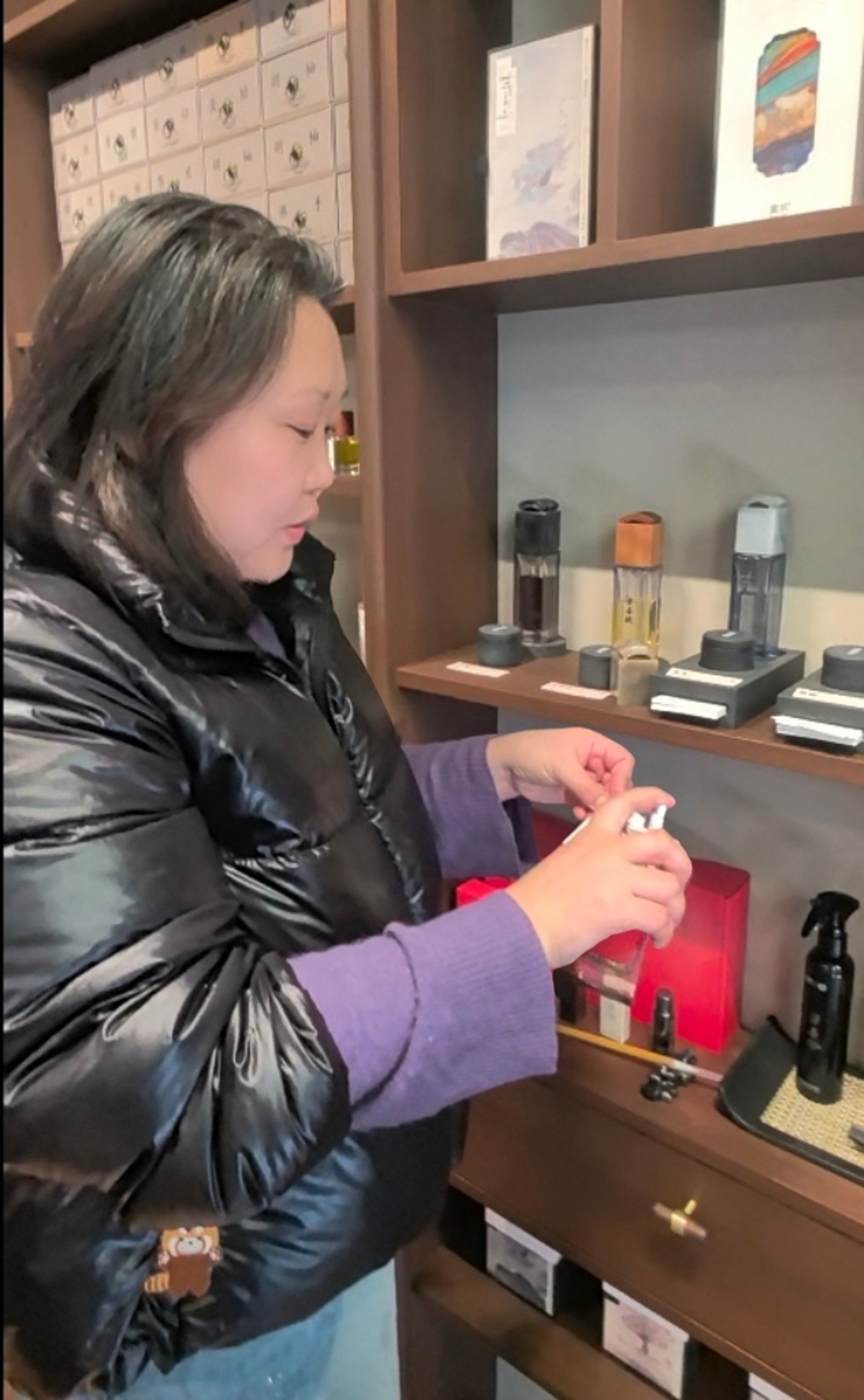 黄菁为客人试香
