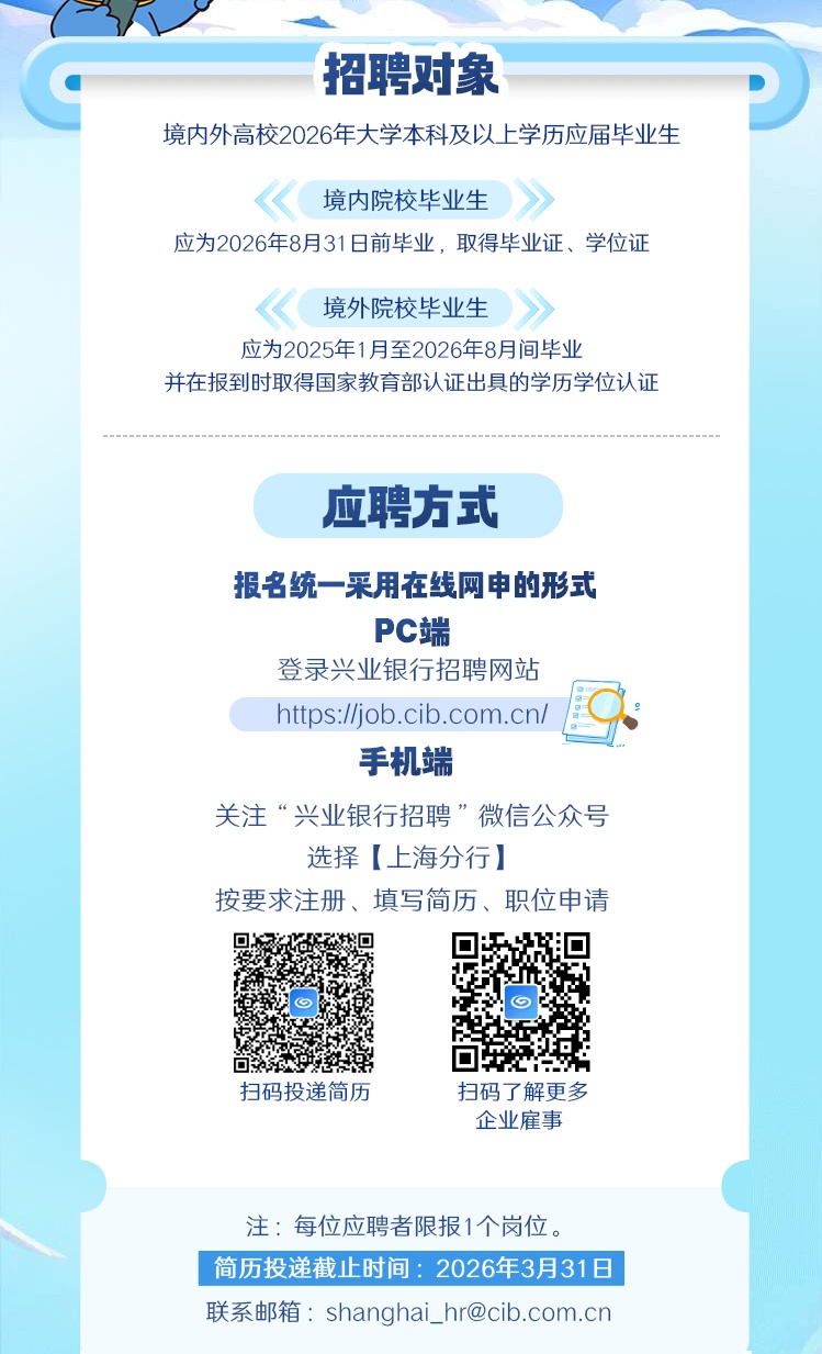 兴业银行上海分行校园招聘