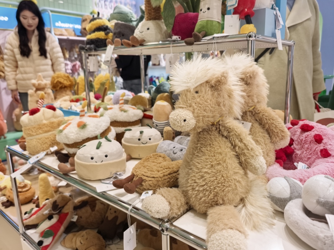 步入sômthin’else另有奇物上海首店,集艺术、家居、咖啡、生活于一体的多元空间令人目不暇接。一隅的英国品牌jellycat展示区,小动物、绿植、美食等被做成了软乎乎的玩偶,不少款式是2026年的新品。“被店外的大型橱窗吸引进来,没想到有这么全的款式,给朋友买了一匹小马,她肯定喜欢!”小王说道。