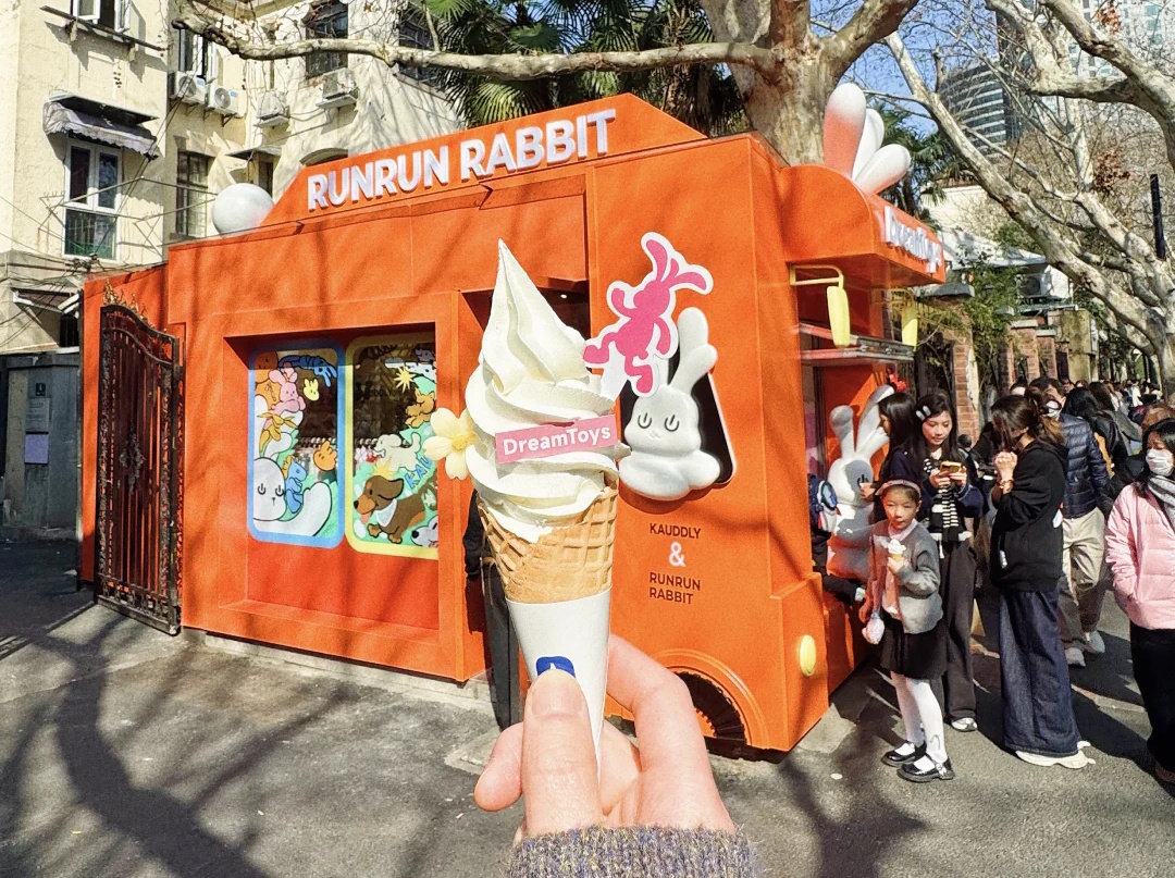 移步向前,潮玩品牌RUNRUN RABBIT奔奔兔携手人宠生活方式潮流品牌KAUDDLY联合呈现的“巴士旅行计划”惊喜靠站,为这条百年老街注入一抹鲜活的萌趣色彩。