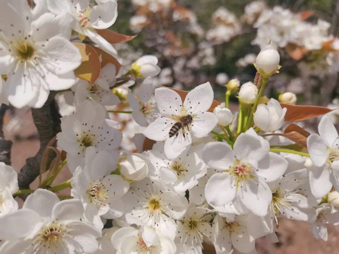“梨花淡白柳深青,柳絮飞时花满城。”梨花洁白如玉,花开时满树雪白,素雅清淡,微风拂过宛如春日里的一场无声飞雪。
