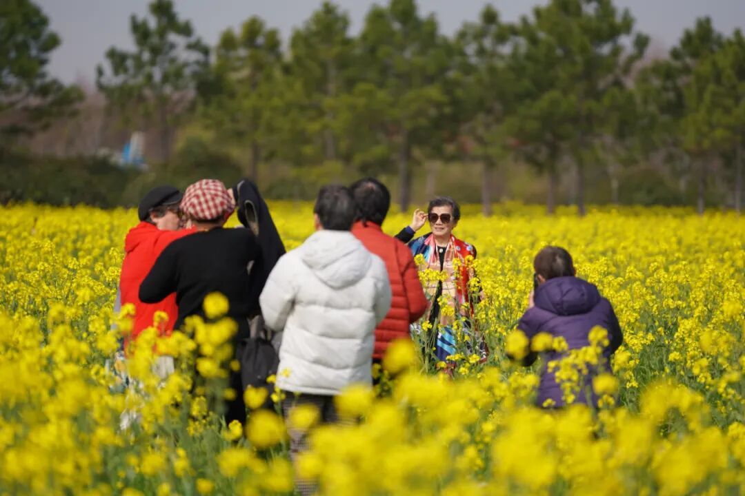 上午的阳光洒在田野上,微风拂过,金色的花海泛起层层波浪,清甜的花香沁人心脾。游客们漫步于花间小径,有的驻足凝神欣赏春色,有的则穿梭在花丛中打卡拍照,欢声笑语汇成了一幅生机勃勃的江南春日游春图。现场热闹非凡,不少市民携家带口前来感受这份乡土气息与春日氛围。