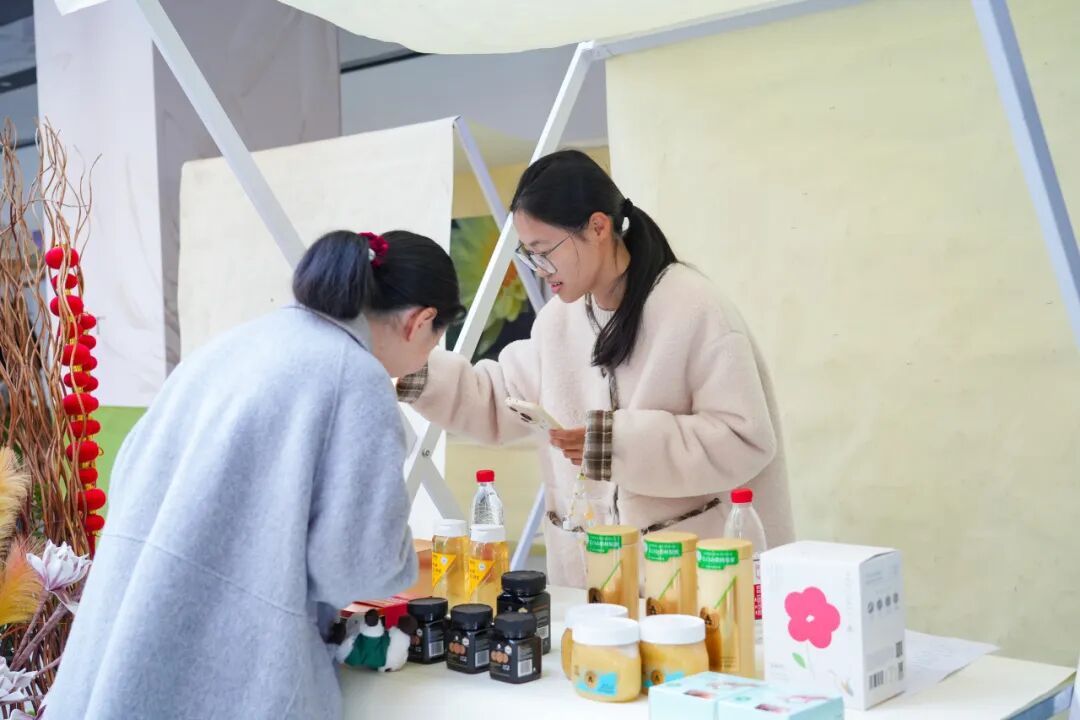 而在市集的另一角,汇聚了柘林各村及本土优质商家的特色好物,有机农产品、乡土美食、文创佳品齐聚一堂,全方位展现本土特色产业的独特风采。西湾农场的“安时尚”番茄色泽红润、饱满鲜亮,吸引了不少市民购买。艾妮维的有机绿叶菜、瓜类蔬菜鲜嫩欲滴。森蜂园的展台上,洋槐蜂蜜、椴树原蜜、鲜蜂王浆等优质蜂产品整齐陈列,工作人员正向来往市民讲解蜂蜜的品质鉴别方法与营养功效。现场还有特色青团、菜卤蛋、臭豆腐,无患子手串,以及本土烘焙品牌“吐司时代”带来的手工吐司、软欧包、特色糕点等。