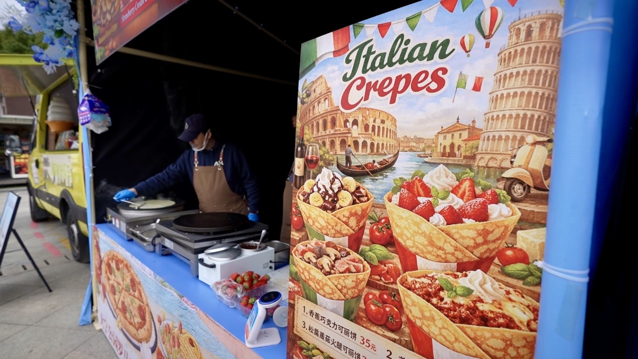 “本来是来看花的,没想到被这股香味‘钉’在这里走不动道了。”前来赏花的市民李先生一手拿着刚切下的比萨,一手举着手机准备随时定格花海与美食的瞬间。“不出国门,就能在花丛旁吃到这么正宗的味道,这个周末太惬意了!”