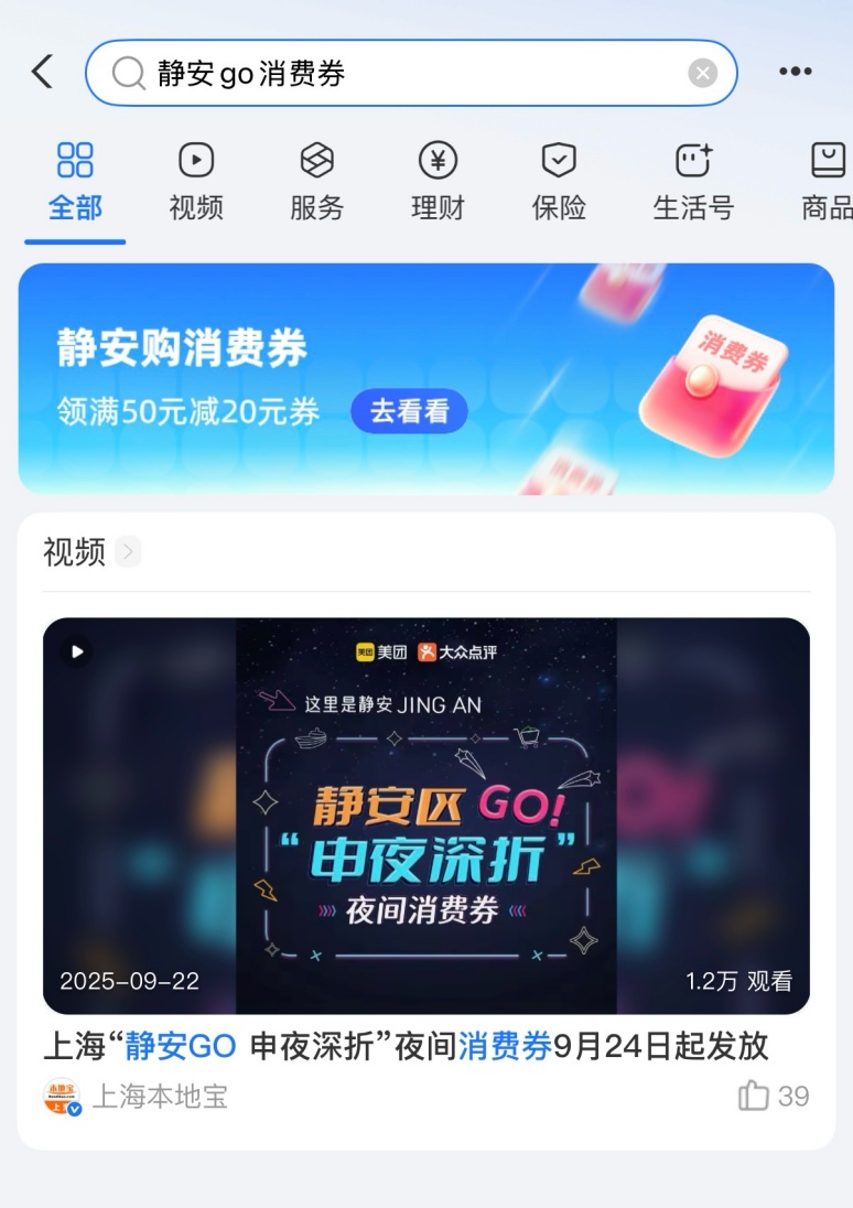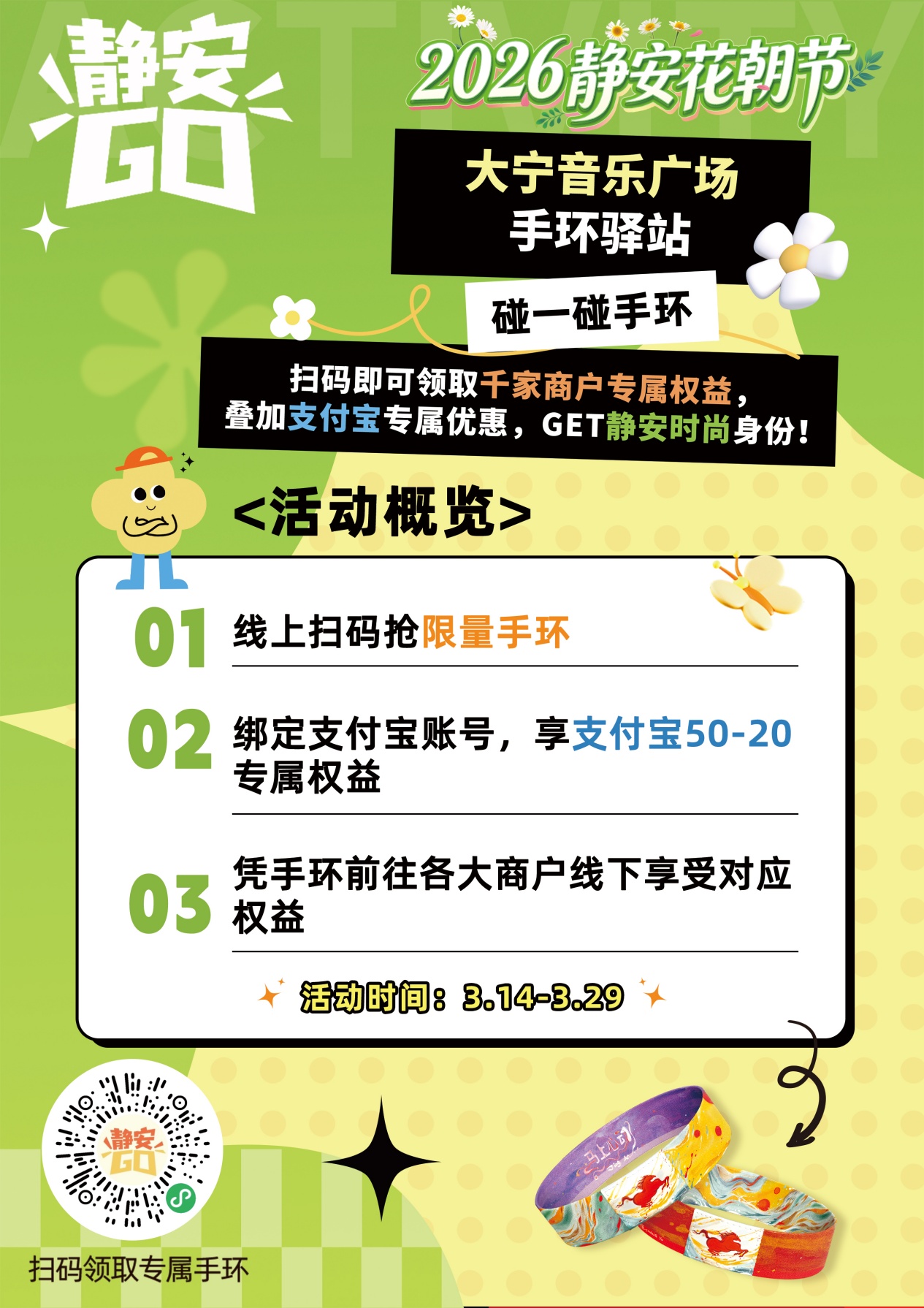 叠加优惠:记得领取手环后去支付宝搜索【静安GO消费券】领取一张“50元减20元”的优惠券哦。