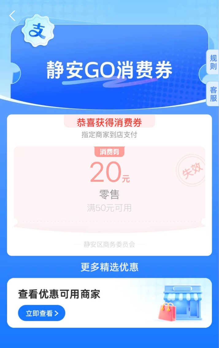 平台通用优惠叠加:在参与活动的商户消费,可同步享受支付宝“50元减20元”专属优惠,此优惠可与商场其他活动叠加使用。