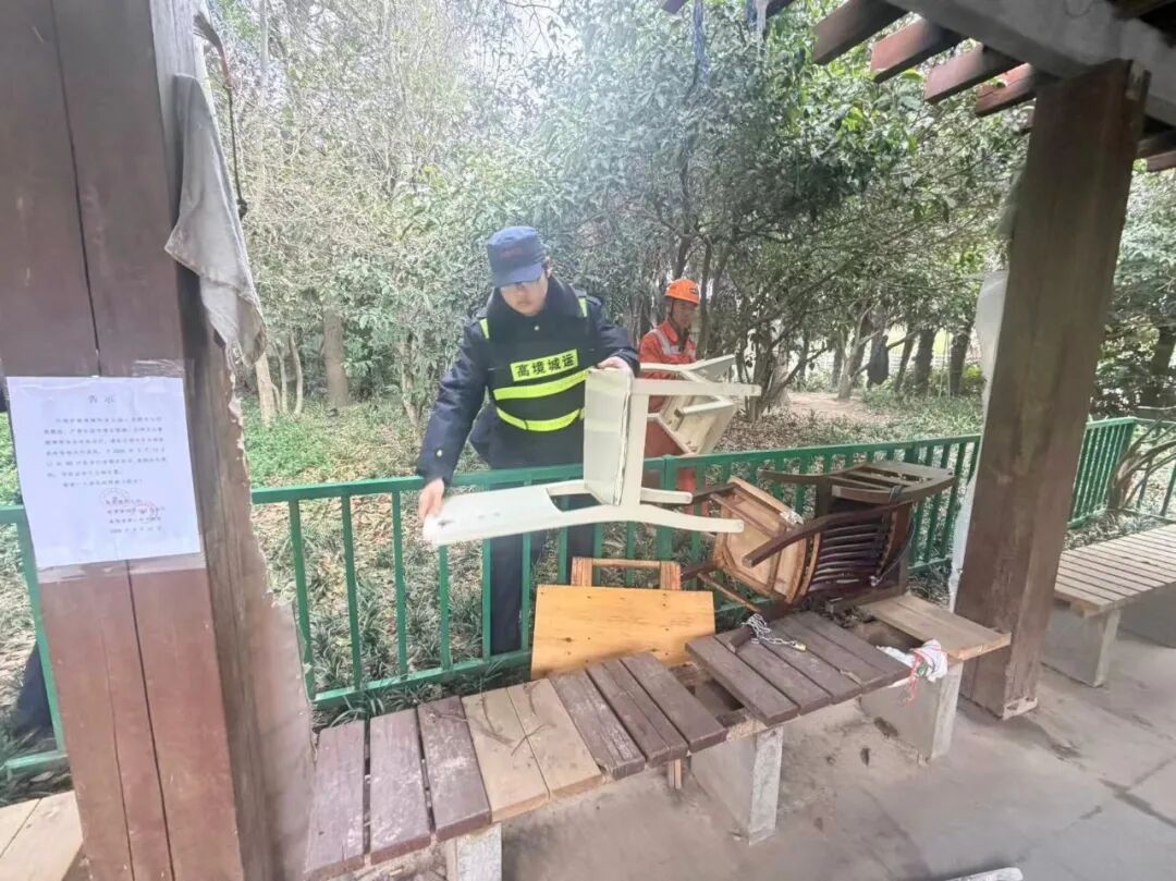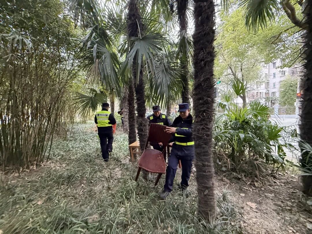 聚焦治理难点,高境镇第三综合网格联动高境镇派出所、综合行政执法队、城运中心、城建中心等多方资源,打破“单打独斗”治理模式,形成协同共治合力。整治过程中,工作人员采取“宣传引导+集中整治”相结合的方式,向居民耐心解读公共空间管理相关规定,结合前期劝阻无效、已张贴告示的实际情况,重点说明违规行为的不良影响,引导其自觉收起桌椅、规范自身行为;对于逾期未整改的堆放物品,依法进行劝导与清理,彻底遏制了违规聚集行为,实现了整治行动的快速见效。