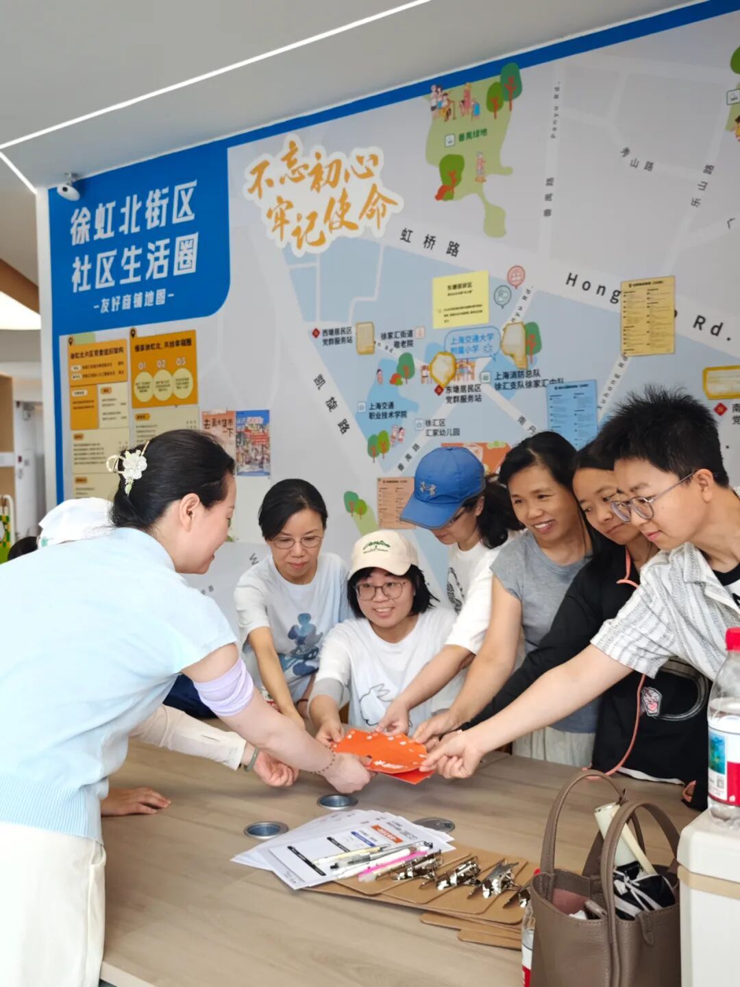 让群众参与治理,首先要让群众了解治理。为了破除全职妈妈们对社区的“距离感”,徐虹北片区妇联组织开展“认识街区”沉浸式体验活动,带领妈妈们走进党群服务中心、社区事务受理中心等场所,详细宣讲社区资源配置、政策办理流程、治理架构体系,让她们清楚“社区是什么、能为我们做什么、我们能为社区做什么”,在沉浸式体验中增强归属感和认同感。