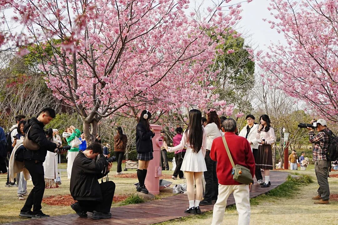 上周,2026上海樱花节进入第二个周末,恰逢晴好天气,顾村公园内早樱与中樱品种接力绽放,粉白交织,如云似霞。市民游客踏春赏花的热情持续高涨,园内人流如织,欢声笑语不绝于耳。人们在樱花树下漫步、拍照、野餐,尽享春日悠闲。这场春日的花事盛会,正以满园芬芳与融融暖意,迎接着八方来客。据统计,上周末顾村公园共接待游客110938人次。 活动回顾 3月21日上午,“樱花树下的故事荟”系列活动在樱悦书苑顺利开展。资深媒体人、作家、策展人——郑静老师围绕黛玉葬花、宝钗扑蝶等经典场景,解读桃花开落所承载的红楼儿女青春与命运,深挖桃花背后的诗意与隐喻,带领听众探寻红楼世界里的春日“桃花源”,感受古典文学魅力。 同日下午,“樱花树下的故事荟”系列活动首场活动:阅宝·亲子故事会顺利举办。宝山作协副主席——吴斌荣(花儿)老师带着绘本《猫房子》与孩子们温情相遇,用生动的语调讲述了这个关于守护与爱的温暖故事,将猫咪守护失智老奶奶、帮她走出悲伤的动人情节娓娓道来,细腻的画风与真挚的情感打动了在场每一位小朋友。故事分享结束后,孩子们化身小小画家,以画笔为媒,将绘本中的温情场景与樱花的浪漫元素相结合,勾勒出心中的“猫房子”与春日盛景,在创作中感受爱与陪伴的意义。 3月22日,一场“未来感”十足的机器人表演点燃了整个周末——众擎机器人T800与PM01双机亮相上海机器人产业园快闪店,吸引数百名游客驻足围观,现场人气爆棚,欢呼不断! 游园 须知 NO.1 须知 游客可通过顾村公园微信公众号、服务号或顾村公园支付宝小程序进行购票(包括免票游客、符合优惠政策的学生、老年人等),享受优惠政策的游客另需出示身份证或各类优惠证件。 公园开放时间:6:00—18:00。 2026上海樱花节期间(3月9日—4月9日)夜间部分区域延长开放至21:30,延长开放期间线上可提前购票,线下售票时间16:30—21:00。 游客入园时,主动出示“购票凭证”,配合工作人员核验。 请广大游客在参观游览过程中,文明、有序游园。咨询电话:56045199、36621019、56045098。 NO.2 门票 顾村公园门票:成人票价格20元/人,大、中、小学生凭学生证10元/人,60至64周岁老人凭身份证16元/人,军人、65周岁及以上老人、残疾人等享受免票政策。 2026年上海樱花节延长开放期间门票:成人票价格10元/人,大、中、小学生凭学生证5元/人,60至64周岁老人凭有效身份证件8元/人,军人、65周岁及以上老人、残疾人等按相关规定享受免票政策的人群亦可免费入园,同时,樱花卡、宝善卡、工会会员卡在樱花节期间也可使用,按规定享受同比例优惠或免票政策。 免票对象:身高1.3米(含)以下或6周岁(含)以下的儿童、65周岁(含65周岁)以上老人、残疾人、现役军人、退役军人、残疾军人、军休干部、离休干部、烈士遗属、病故军人遗属、因公牺牲军人遗属、现役军人家属,在职、退休、残疾消防救援人员(含政府专职消防员)和消防救援院校学员、在职公安民警(凭相关有效证件)。 NO.3 交通 地铁:顾村公园2号门紧邻轨道交通7号线、15号线顾村公园站。 公交: 1号门:嘉泰线、963、527、528等线路。 2号门:宝山3路、宝山29路、1604、1605等线路。 3号门:1604路。 停车:公园及周边共计6000个停车泊位供游客停车。公园各停车场均为电子支付停车费。