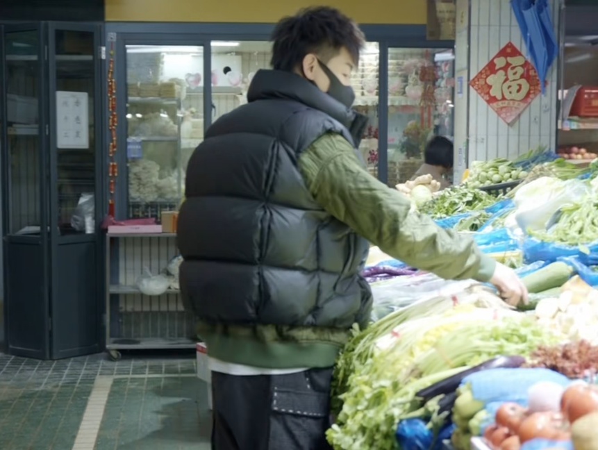 胡彦斌带着在菜市场买的“战利品”