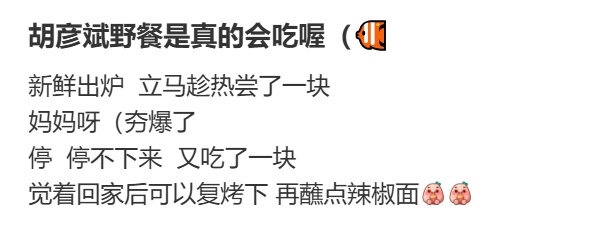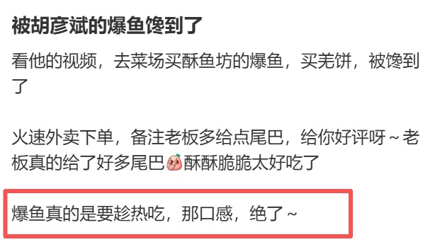 还有网友立马去打卡同款“胡彦斌三件套”,反馈“熏鱼趁热吃夯爆了”!