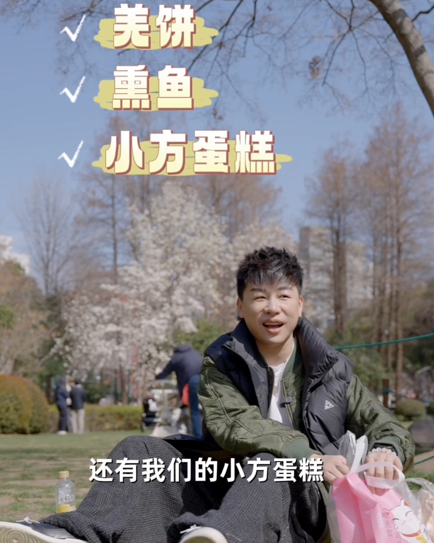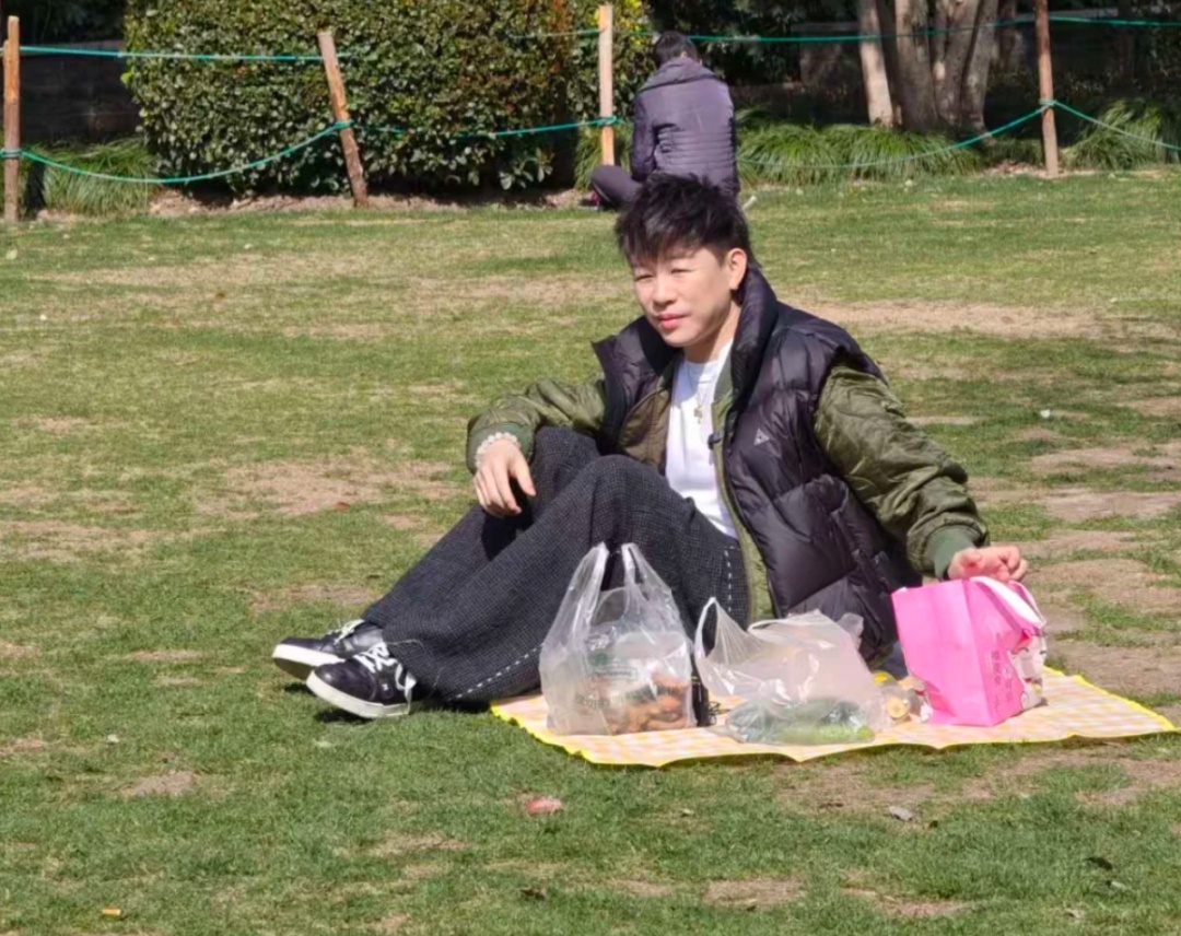 偶遇胡彦斌在上海一公园野餐