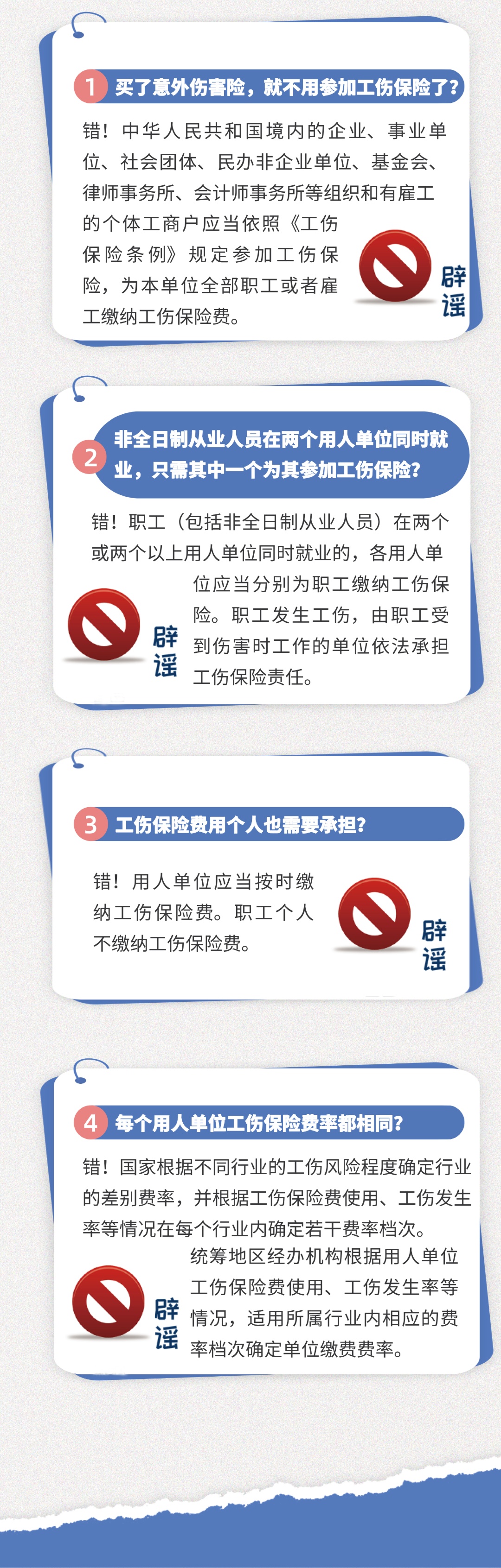据市人社局介绍,工伤保险是每位职场人都需要关注的重要保险制度!关于工伤保险的知识了解多一点,保障就多一点!关于工伤保险的这些谣言,看看您能识破几个: