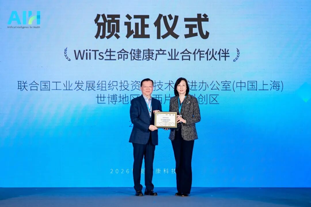 联合国工业发展组织投资与技术促进办公室(中国上海)向世博地区浦西片区正式授予“WiiTs生命健康产业合作伙伴”证书。