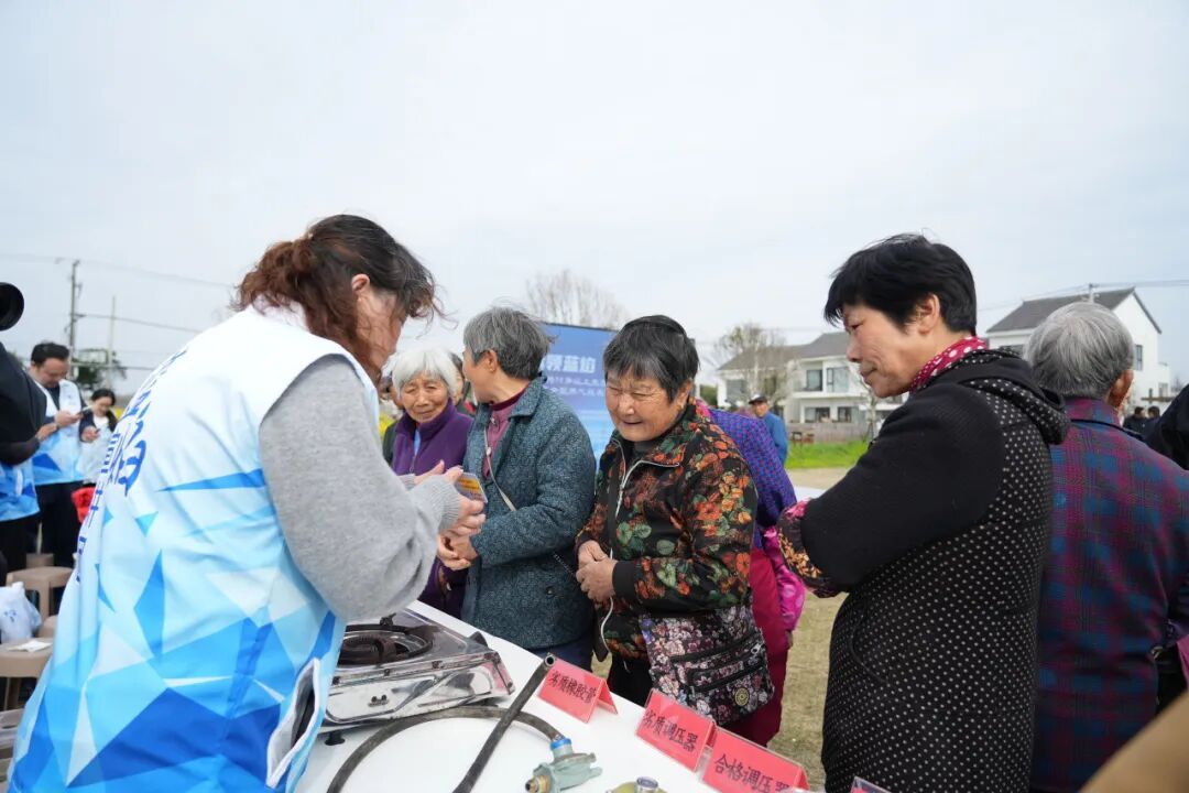 活动现场设立了宣传摊位,蓝焰宣讲团成员向村民分发资料及宣传品,开展面对面互动答疑。同时,两组专业队伍深入村民家中开展灶具更换服务。