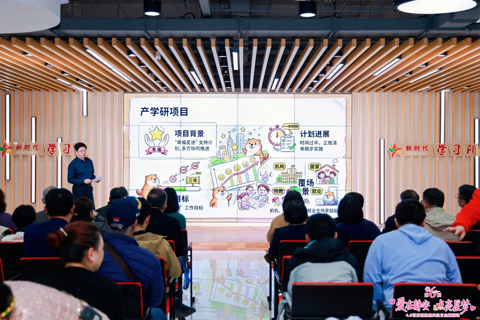 3月26日,第六届“爱在静安·点亮星梦”世界孤独症关注日主题活动在静安区党建服务中心温情启幕。本次活动紧扣今年世界孤独症关注日“提质全生涯服务供给,聚焦孤独症家庭支持与成年服务”的主题,以“爱心守护、科技赋能”为核心,上海市残疾人就业服务中心、静安区民政局、区残联、区妇联,上海市慈善基金会静安代表处等单位领导,爱心企业多特瑞代表及数十个孤独症家庭齐聚现场,共同见证科技为孤独症群体带来的成长与改变。