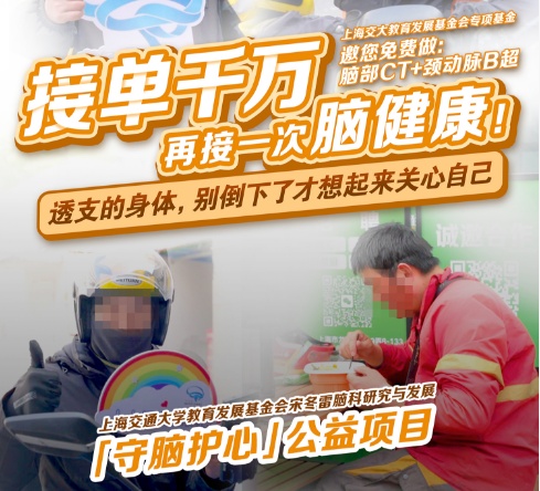 穿梭于楼宇间的外卖骑手,已成为城市运转不可或缺的力量,其健康保障却仍显薄弱。2026年3月,上海交通大学教育发展基金会宋冬雷脑科研究与发展基金“守脑护心”公益项目,首次将脑健康筛查精准投向快递员、外卖骑手等新就业群体。