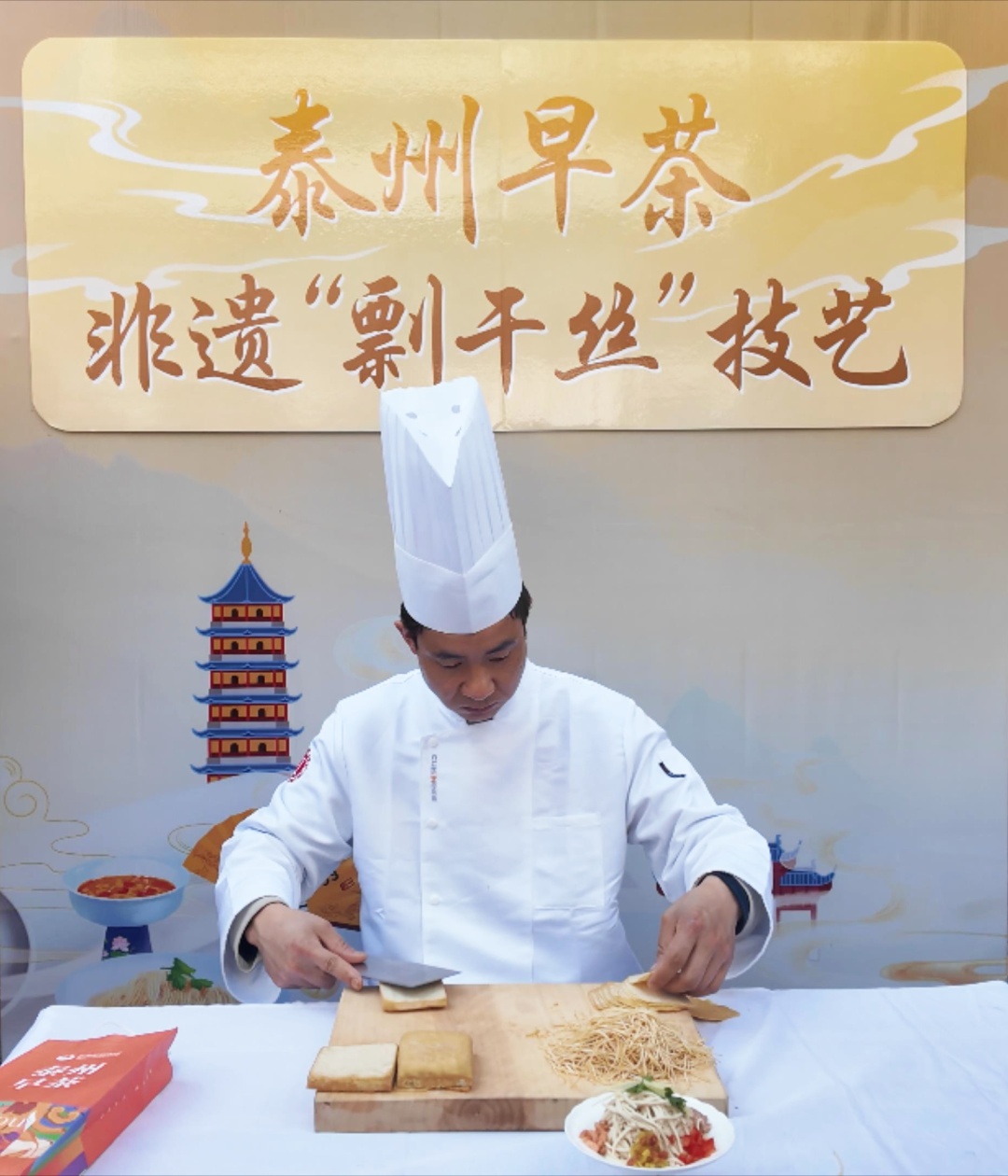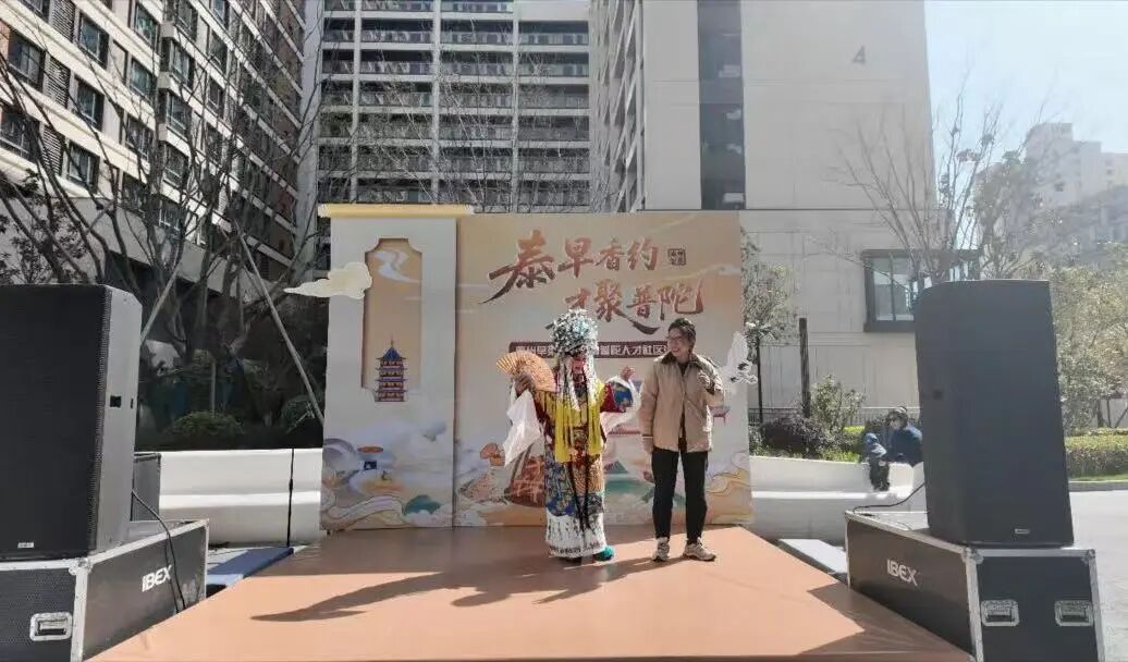 “早啊,喝茶去不去!”随着相声《泰州早安》里一句地道的泰州方言招呼,3月28日上午9点,“泰早香约·才聚普陀”泰州早茶走进上海普陀人才社区活动在西部乐巢·中岚居的望星空广场举行。十余张早茶桌依次排开,早茶品鉴、美食尝鲜、京剧表演、文创展示精彩纷呈,丰富活动传递着水乡文脉韵味,让居民与青年人才在烟火气中品味江南,也为普陀与泰州两地文化交流、人才联动搭起桥梁。 活动现场 现场,酥香的黄桥烧饼、鲜醇的靖江蟹黄汤包,各色美食香气四溢,引得市民排起长队。“作为江苏省级非物质文化遗产,靖江蟹黄汤包已有200余年历史。”从业十余年的尚香汤包文博馆工作人员张卫英一边介绍,“汤包主打皮薄如纸、汤浓馅鲜,每只都用一整只螃蟹熬制馅料。”制作汤包时从擀皮到拆蟹全程手工,其中藏着泰州人对生活的细致讲究,也让这道美食成为了泰州文化的载体之一。居民王小花则端着现熬的汤面赞不绝口:“汤头鲜得很,一尝就知道是慢火熬出来的!”她表示,希望能把店开到社区里,让大家在家门口就能尝到泰州美食。 品早茶、尝美食 非遗技艺展示区人气同样旺盛,从业十五年的张文文师傅正表演“剽干丝”。薄如蝉翼的豆腐干被切成细若发丝的条状,淋上酱汁,清爽爽口。“剽干丝的精髓在于凭手感与刀工控制厚薄,感知刀的力度与分寸,每一刀都要稳准细,切出来的干丝细而爽口,还能做凉干丝、煮干丝,冷热两吃。”他一边演示一边说道,“泰州是水乡,生活节奏舒缓,老泰州人晨起提着鸟笼下楼,一壶热茶、一碗干丝,便可闲坐至正午,这是刻在骨子里的习惯。” 市民周曜翔正和朋友围坐闲谈,面前的茶杯冒着袅袅热气:“今天的干丝、包子、茶水都很有特色。”其朋友刘淑洁补充说:“平时工作忙,能通过这种活动慢下来、沉静下来,是很难得的体验。”社区里摆起的早茶席,就这样连接起都市的快节奏和水乡的慢时光,让市民在品茶漫谈里寻得一份心安与惬意。