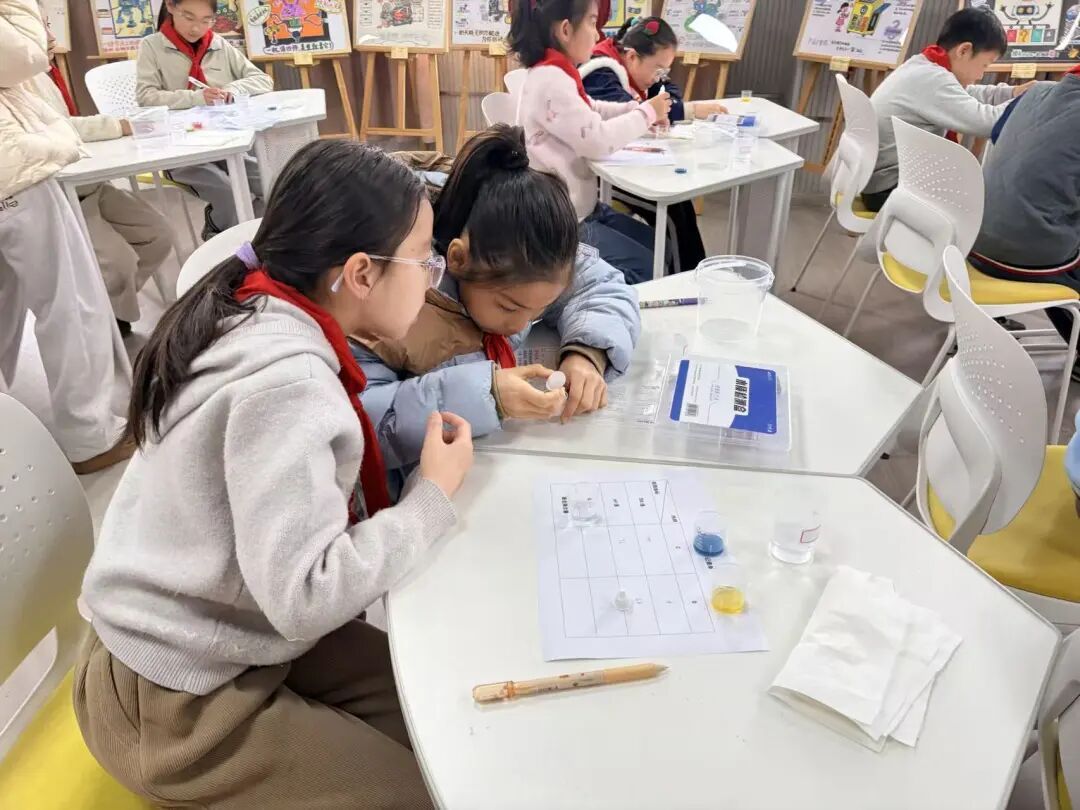 在“家用水的水质检测”实践课堂上,杨浦区青少年科技站老师带来专业的检测试剂和工具,手把手指导同学们操作,耐心讲解水质好坏的判断标准。当看到检测试剂随着水质变化呈现出不同颜色时,同学们充满好奇、积极参与,在亲自动手操作中,不仅掌握了实用的水质检测方法,更深刻理解了“珍惜每一滴水、守护水资源安全”的重要性。