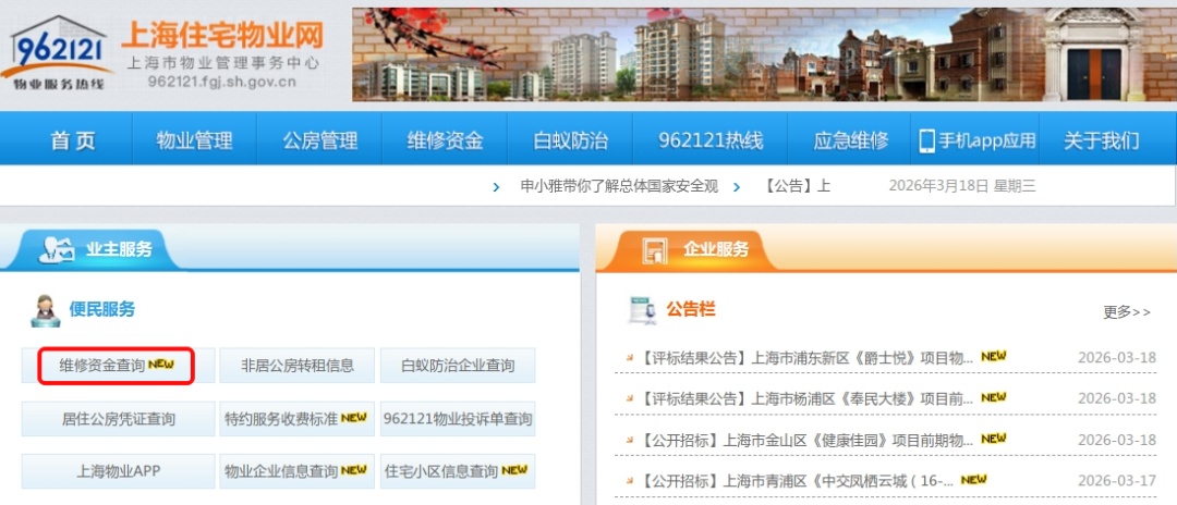 1、打开上海住宅物业网,点击首页“业主服务”→“维修资金查询”,登录并绑定房屋信息后,可在左侧“电子结存单”中查询、下载房屋对应的结存单信息。 2、打开“上海物业”微信或支付宝小程序,绑定房屋信息后,可在首页“寻找服务”→“维修资金”→“电子结存单”中查询房屋对应的结存单信息。 特别提示 如您绑定房屋后,查询结果显示“未查到相关数据”,该房屋可能为售后公房等多种情况。建议您向小区所在物业服务企业或代理记账机构查询,并了解维修资金使用情况。