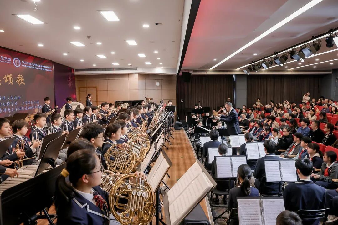 华东师范大学闵行基础教育集团为此次音乐会的成功举办奠定了坚实基础。依托华师大深厚的学术底蕴与卓越的专业引领,华师虹桥在美育创新与特色办学上不断探索。此次集团校乐团联袂出演,既是集团优质教育资源转化为办学效能的生动体现,更是集团打造基础教育“最佳实践地”的重要举措。上海爱乐乐团的专业艺术家们则以现场演绎、同台指导的形式,为校园乐手带来专业的艺术熏陶,实现了专业艺术院团与校园美育的深度融合,让孩子们在家门口就能感受高水平艺术的魅力。