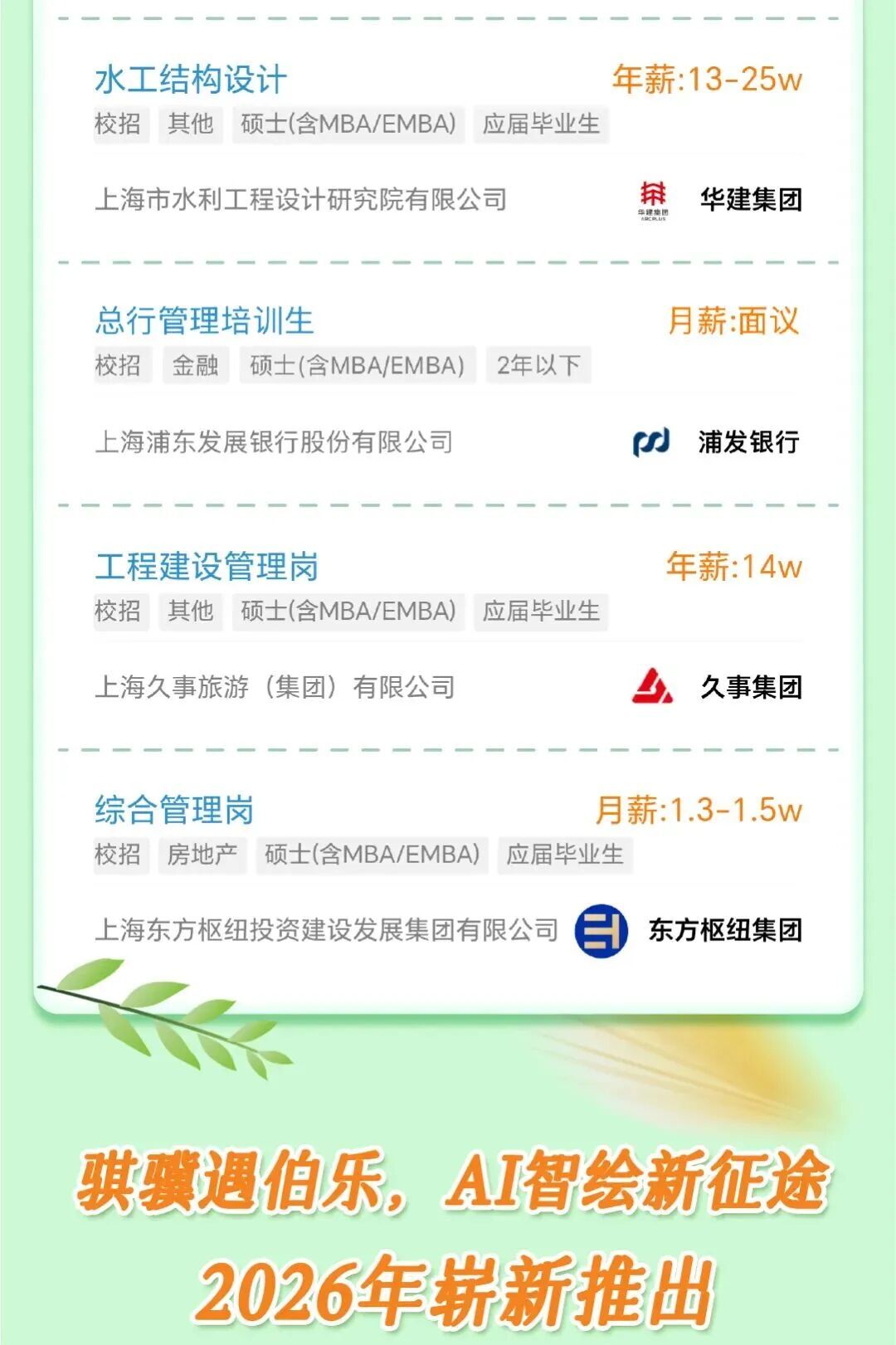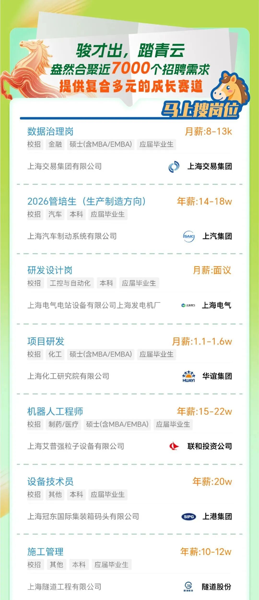 市国资委介绍,“骐骥春来”上海国资国企2026年春季校园招聘正式启动。本市地方国有企业提供近7000个招聘需求,登录网址https://shgzwzp.fsg.com.cn或扫描文末二维码查询获取,欢迎高校毕业生了解参与↓