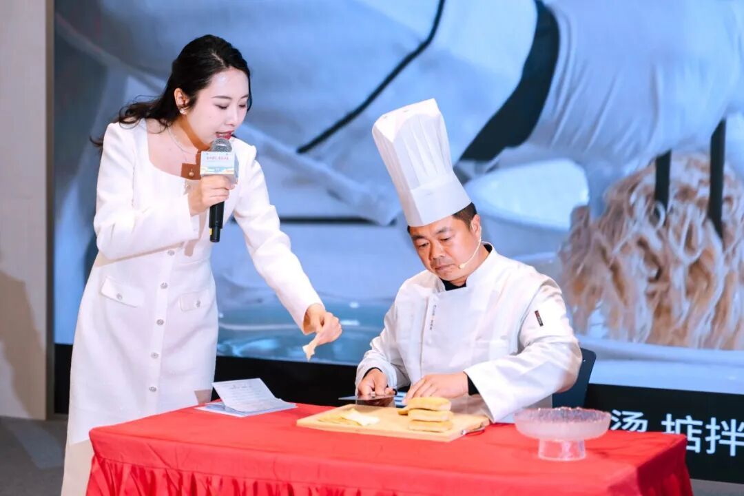 推介会现场,泰州干丝非遗传承人肖平展示二十余年刀工,将豆干切得薄如蝉翼。展示区的泰州早茶、泰州木雕、兴化面塑等非遗展演吸引市民驻足,泰州各市(区)特色文创小花车集中呈现城市巧思,将非遗文化与烟火气息相融呈现。