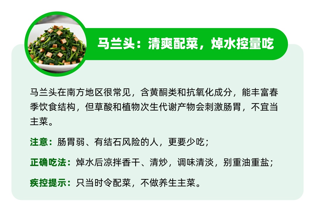 马兰头在南方地区很常见,含黄酮类和抗氧化成分,能丰富春季饮食结构,但草酸和植物次生代谢产物会刺激肠胃,不宜当主菜。