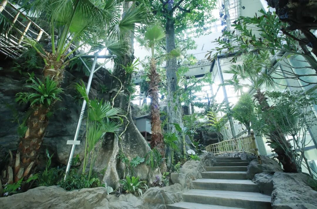 作为科技馆十大常设展区中面积最大的一个,该展区展示面积超3000m2 ,“雨林秘境”的前身是观众熟知的“生物万象”展区。此次升级改造,在保持原有山体结构不变的前提下,对展示内容和形式进行了颠覆性的重塑。它以西双版纳热带雨林为蓝本,真实还原了板根、独木成林、绞杀等奇特自然现象,甚至模拟了雨林昼夜与晴雨交替的真实环境。
