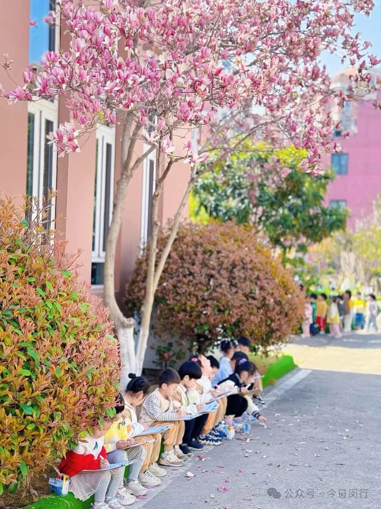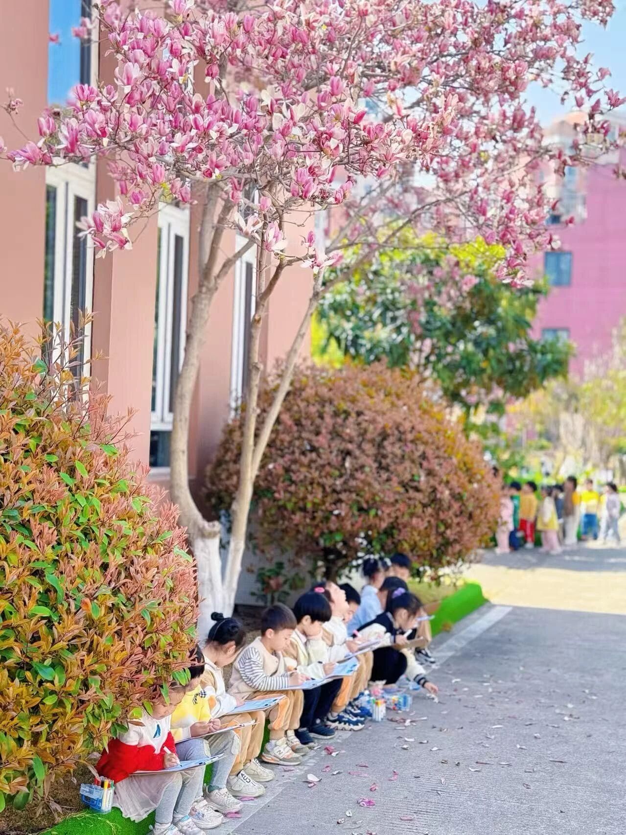 本周,记者收集了区内多所学校、幼儿园的春日美景——教学楼前的玉兰悄然绽放,操场边的柳枝吐露新绿,花园里的迎春花明艳如金。阳光下,一场春日音乐会正在上演,琴声随风飘扬;美术课上,学生们执笔绘春光;操场上,少年们奔跑的身影与繁花相映成趣。校园一角,孩子们戴着草帽,体验春耕之乐。