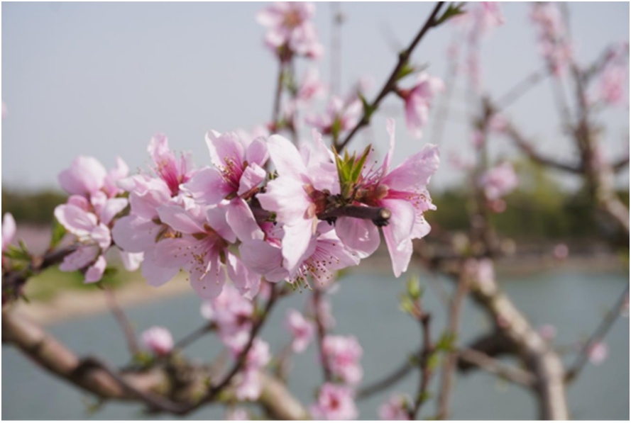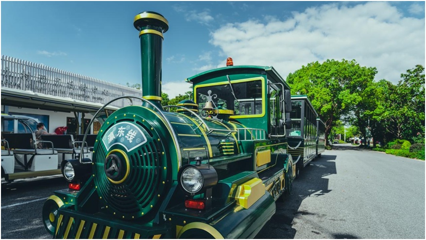瀛东小火车“穿梭桃园”,坐在车上,看桃花在两侧一树一树地掠过,春风拂面,笑声盈盈。