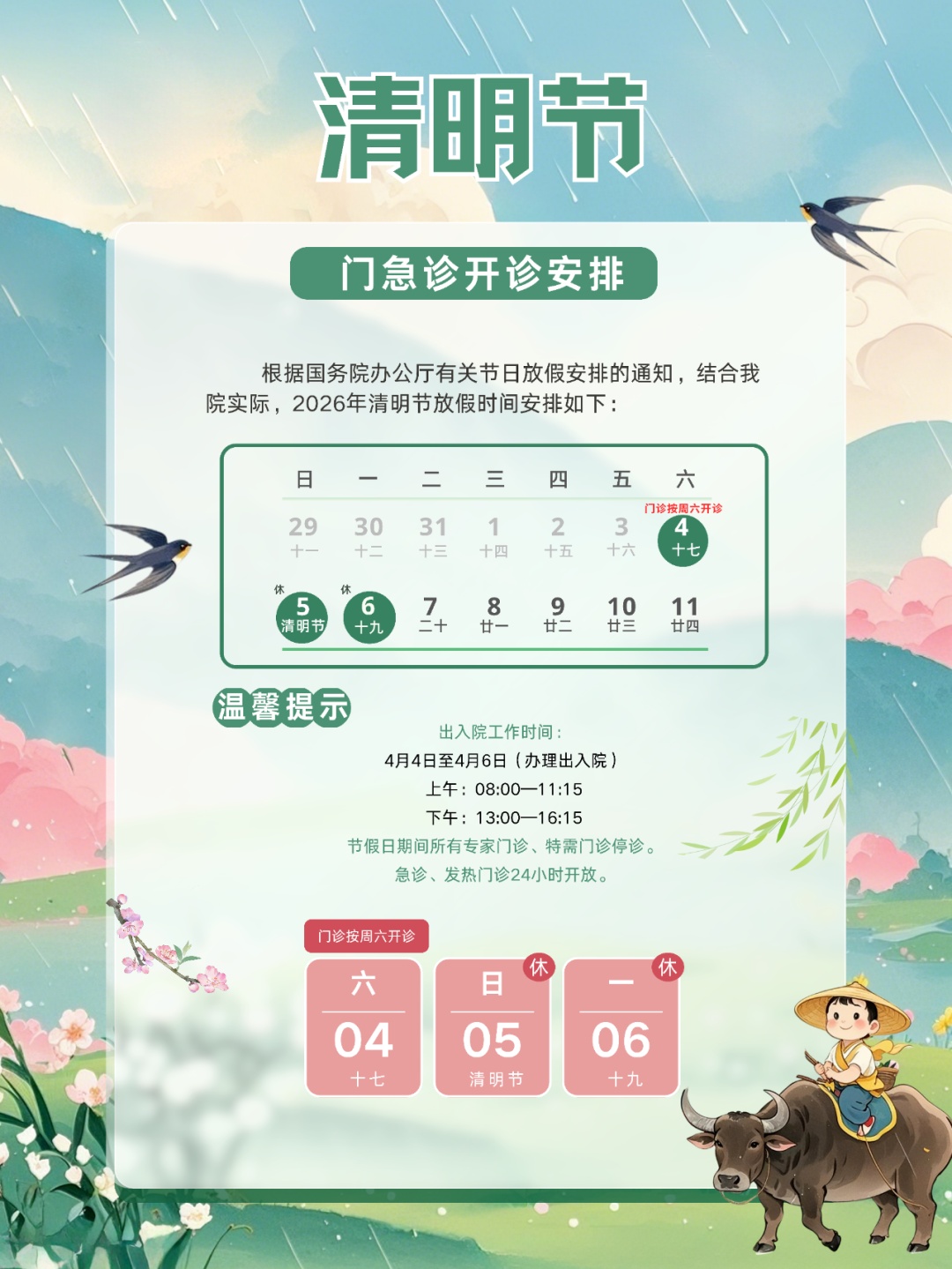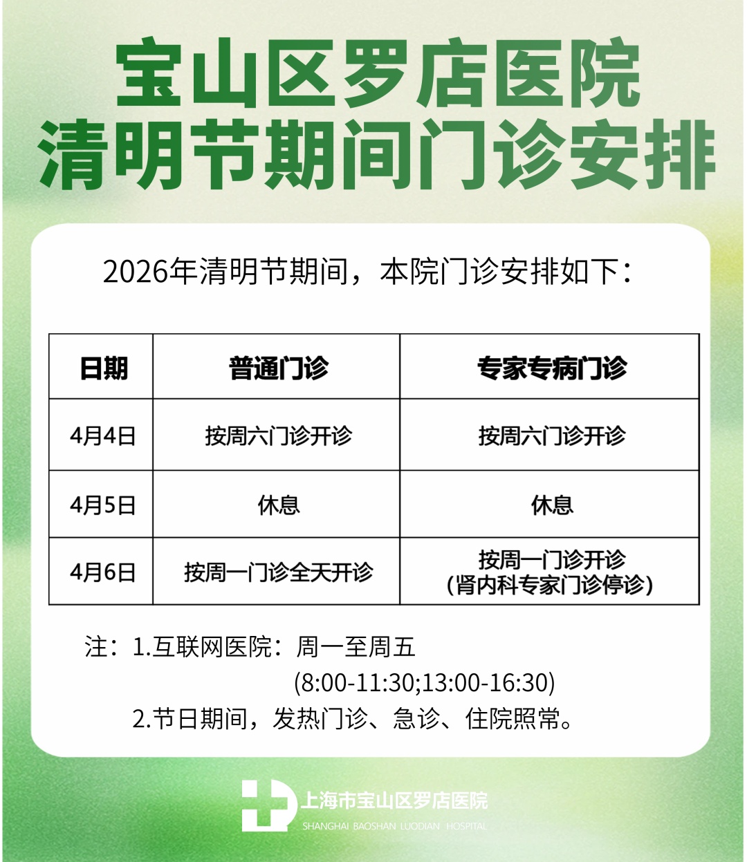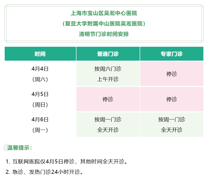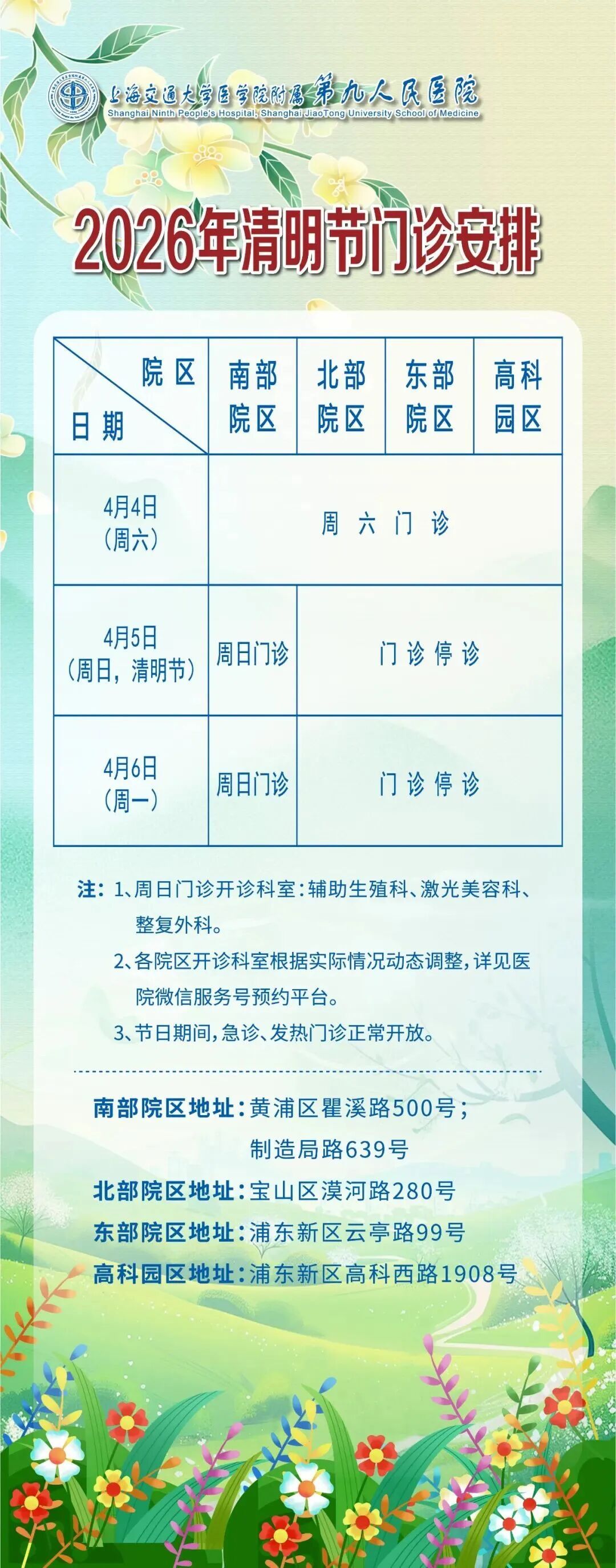 2026年清明假期即将到来,小编汇总了宝山区各综合性医院及各社区卫生服务中心清明假期期间的门、急诊时间安排,快动动手指转给有需要的朋友吧。