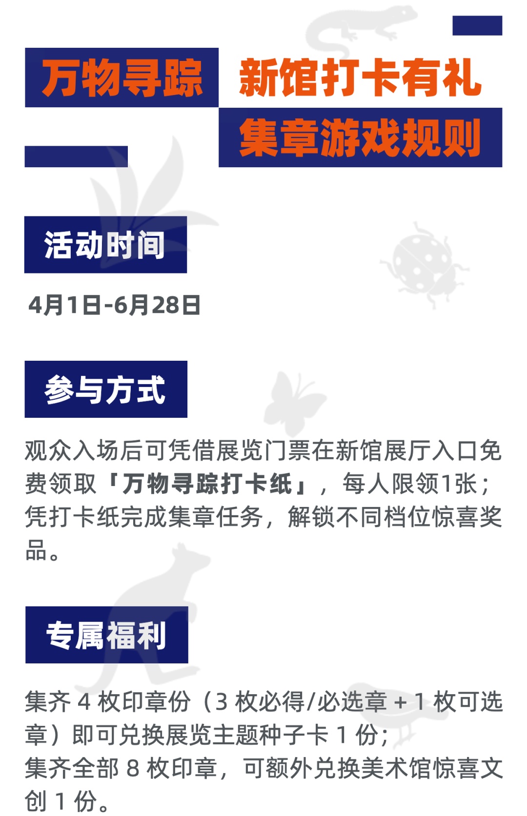 更多详情请点击传送门查看:“万物寻踪”集章打卡规则抢先看!