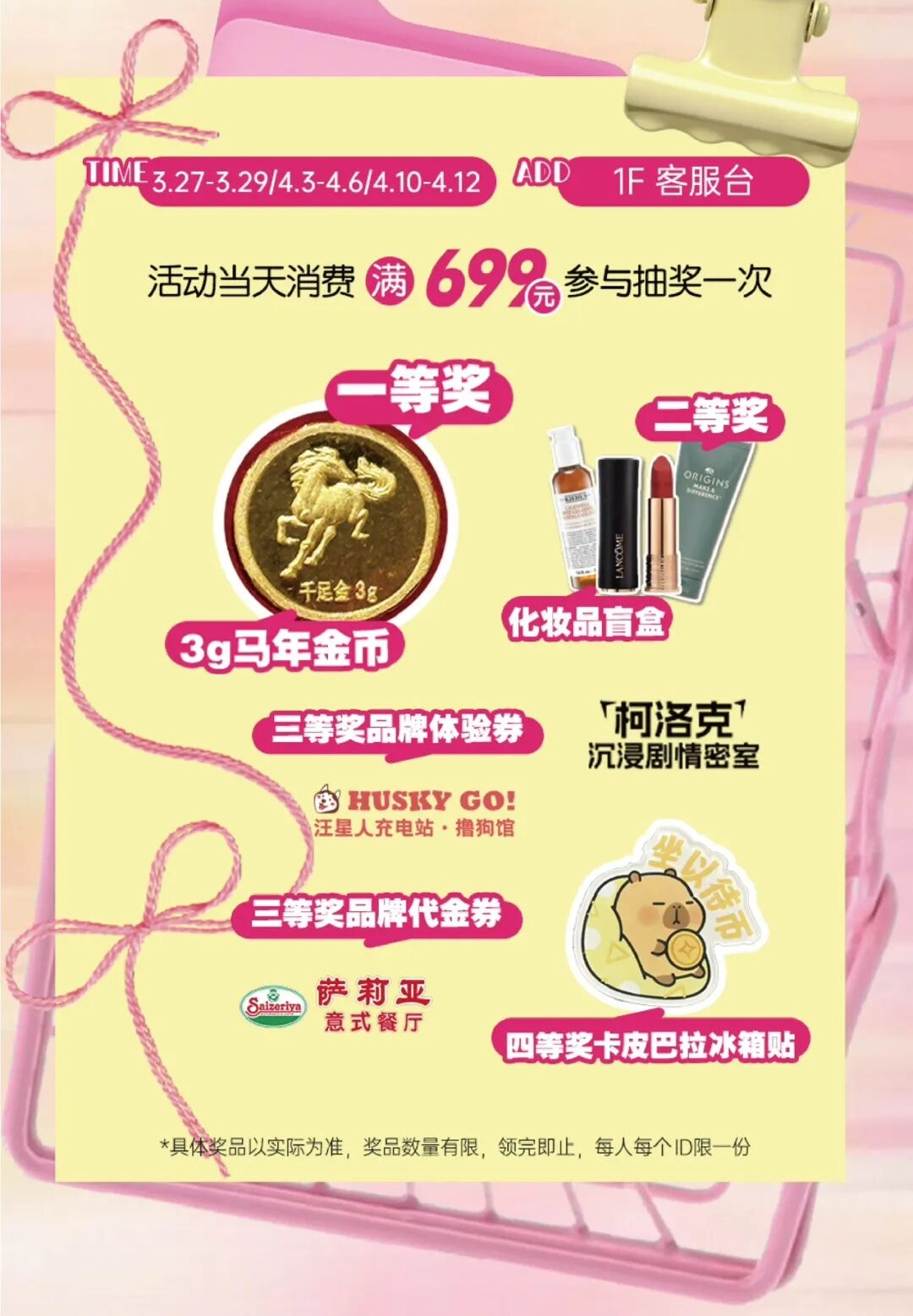 即日起至4月6日,第一百货商业中心一线美妆7.9折起、运动类5折起、服饰3折起、黄金类上限立减120元/克,镶嵌类3.5折起、小家电6.5折起!还有美妆券、运动券、积分兑换等等!对了,积分抽奖别错过,奖品至高有华为P70,还有露营车、阿迪帽子、二次元盲袋......