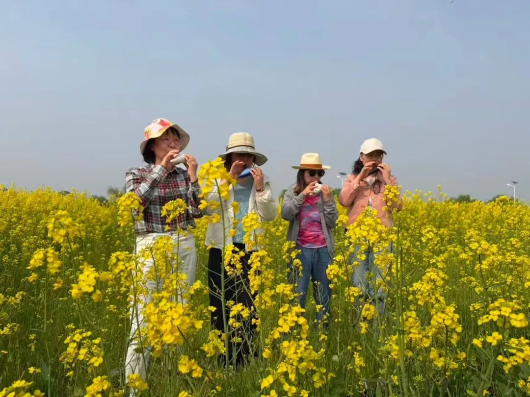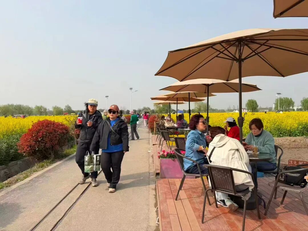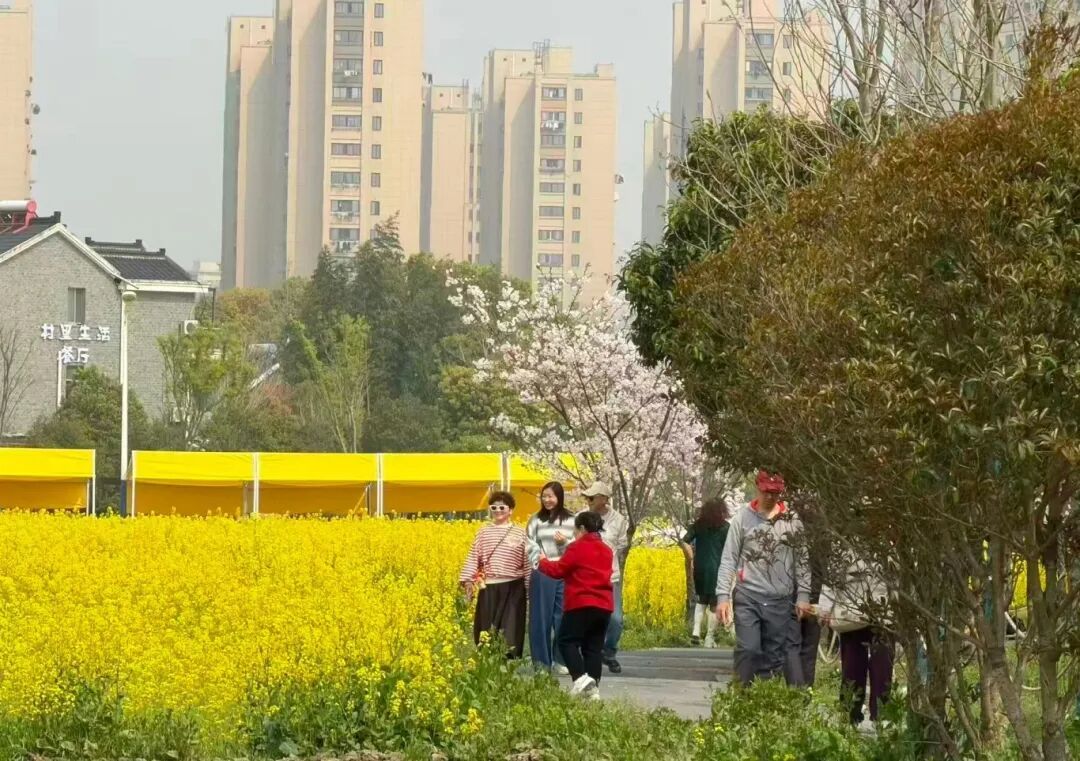 春暖花开,宝山区罗店镇“远景花田”千亩油菜花渐次绽放,带动周边乡村旅游持续升温。进入4月,油菜花全面盛放,金灿灿的花田更吸引了大量市民游客前来赏春。 这片一望无际的花海迎来大批游客。半人多高的油菜花田里,不少市民驻足其中,有人举着自拍杆记录春光,有人与朋友相约,在花海中摆出各种姿势,定格春日明媚风光。 游客王女士说:“看到金灿灿的油菜花,感觉春天的气息特别浓郁,心情也特别开阔。” 除了静态赏花,远景村还设置了动态游览路线。一辆花海小火车穿行于田间,带来零距离的赏花体验,深受游客欢迎,每趟发车几乎都座无虚席。 游客徐女士表示:“感觉很浪漫,想起了小时候,油菜花一开,就会跑到油菜地里面躲猫猫,很开心。” 游客纷至沓来,也带火了周边的乡村游。一家被花田环绕的茶食小店顾客盈门,墙上的彩绘同样成为热门打卡点。 游客严女士表示:“在网上刷到这里的油菜花田,大家便相约一同前来。我们四个人在一起学吹陶笛,在这个花田里面吹了一曲《望春风》。” 远景花田是罗店镇以花为媒打造的乡村旅游景点,整合了远景村、联合村、罗溪村三个行政村的农田,形成千亩花田的规模效应。 随着油菜花年年盛放,加上罗店花神节常设于此,远景花田的名气与人气不断提升。今年3月以来,花田进入花期,再次成为市民游客踏青赏春的热门目的地。 远景村党支部书记表示:“我们村的露营基地、网红茶室、咖啡馆,从3月周末开始就基本处于爆满状态,上个周末日均客流量大概8000人次,这个周末,罗店花神节将要在我们远景花田举办,预计届时三天假期,客流量应该能达到10万人次。”