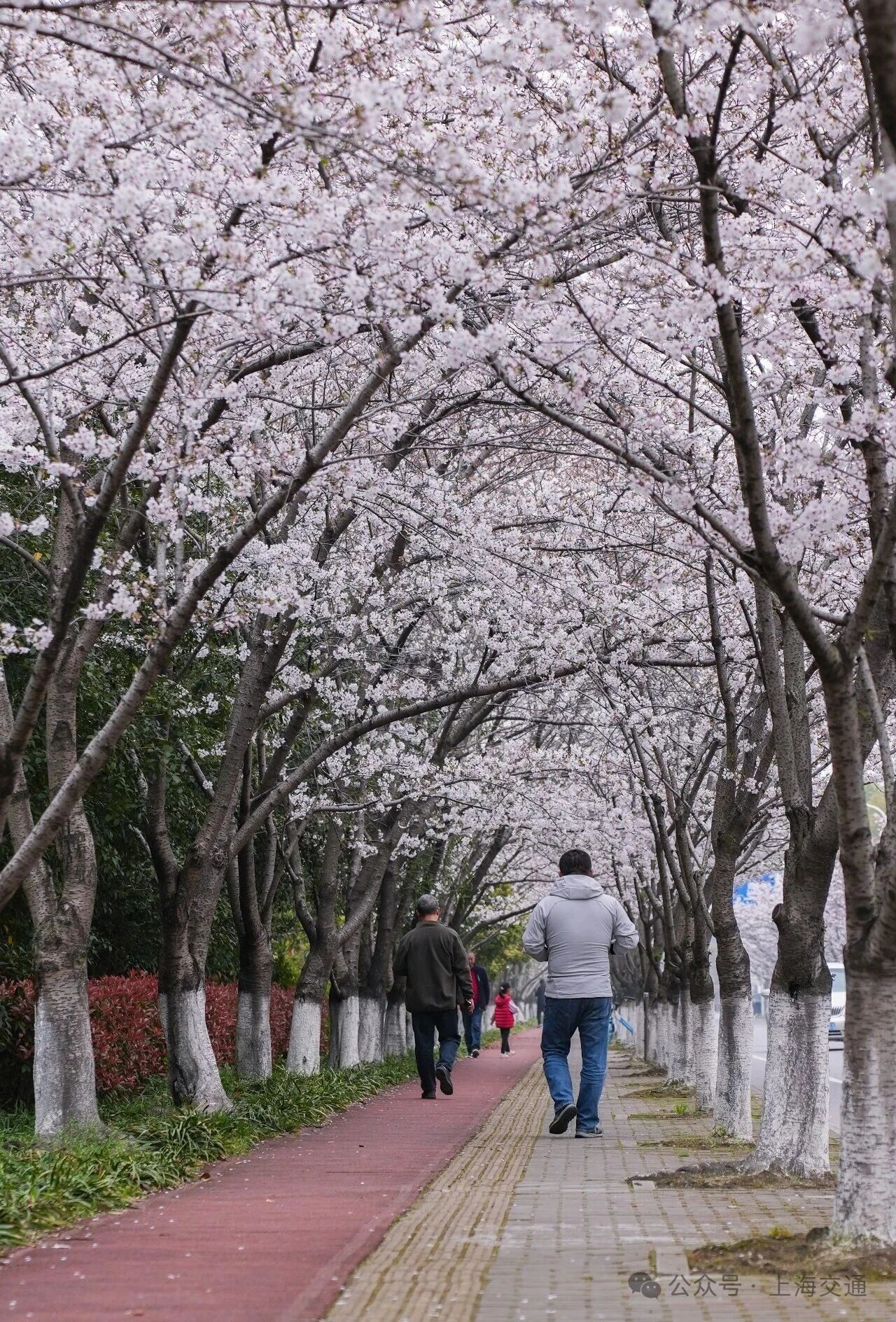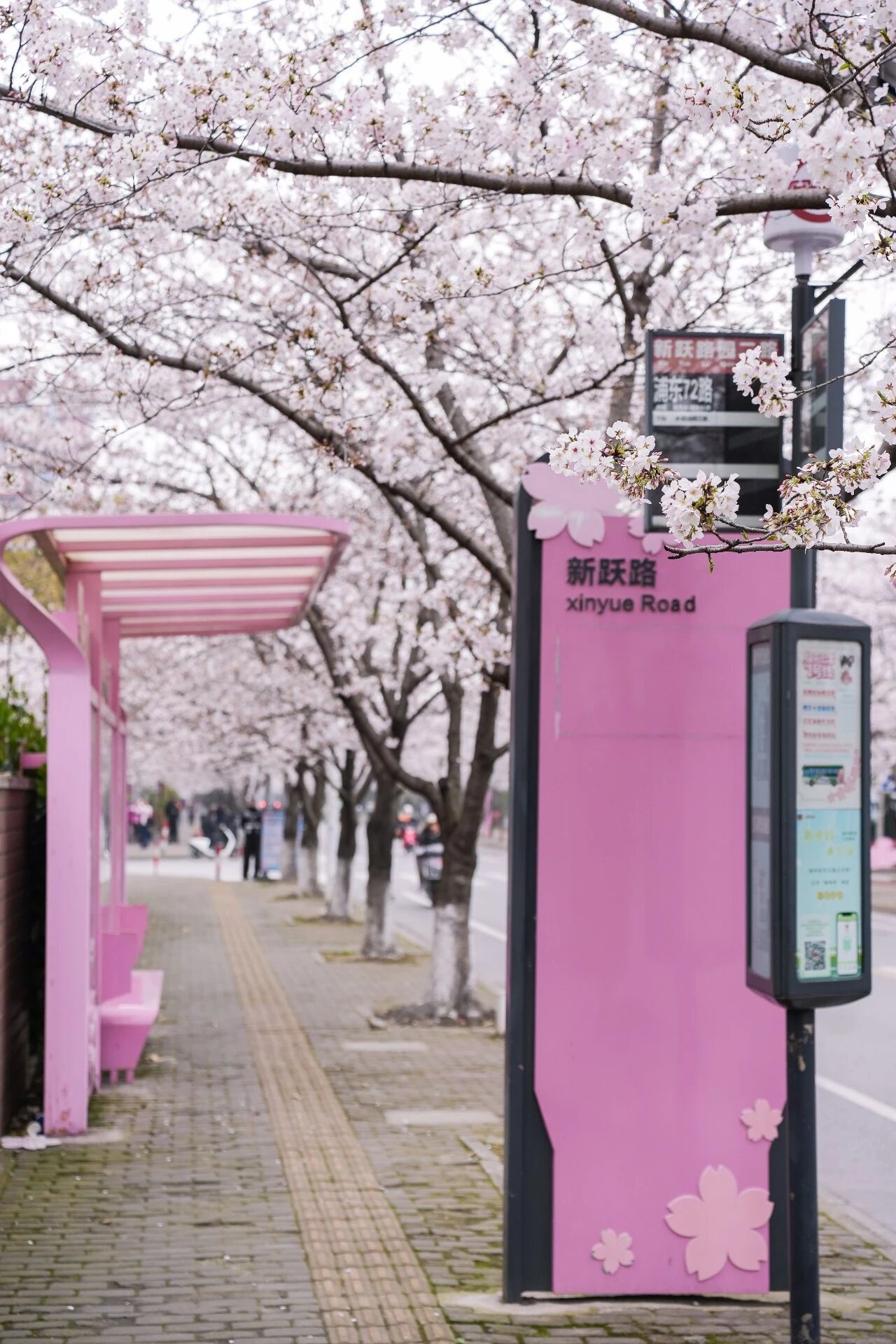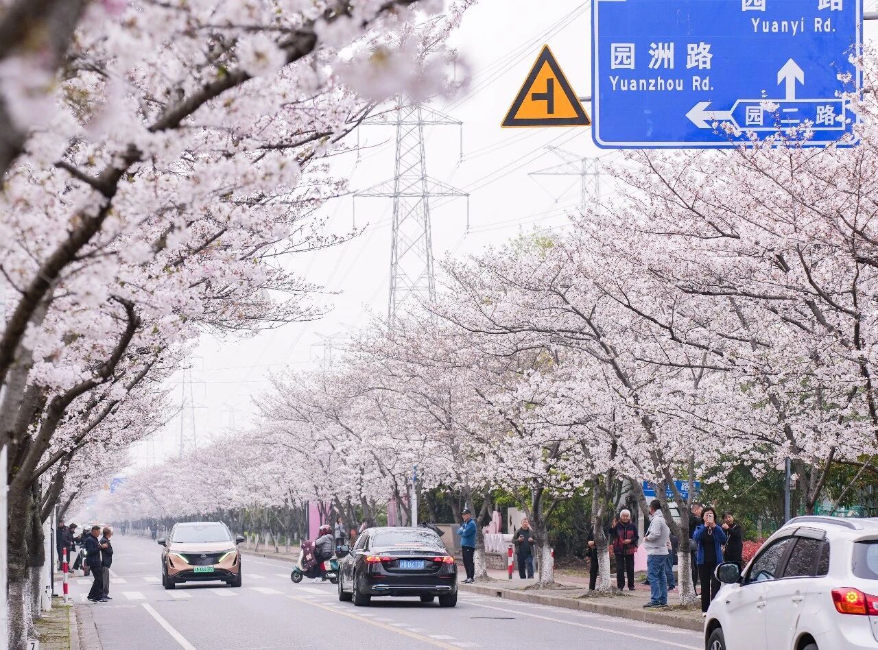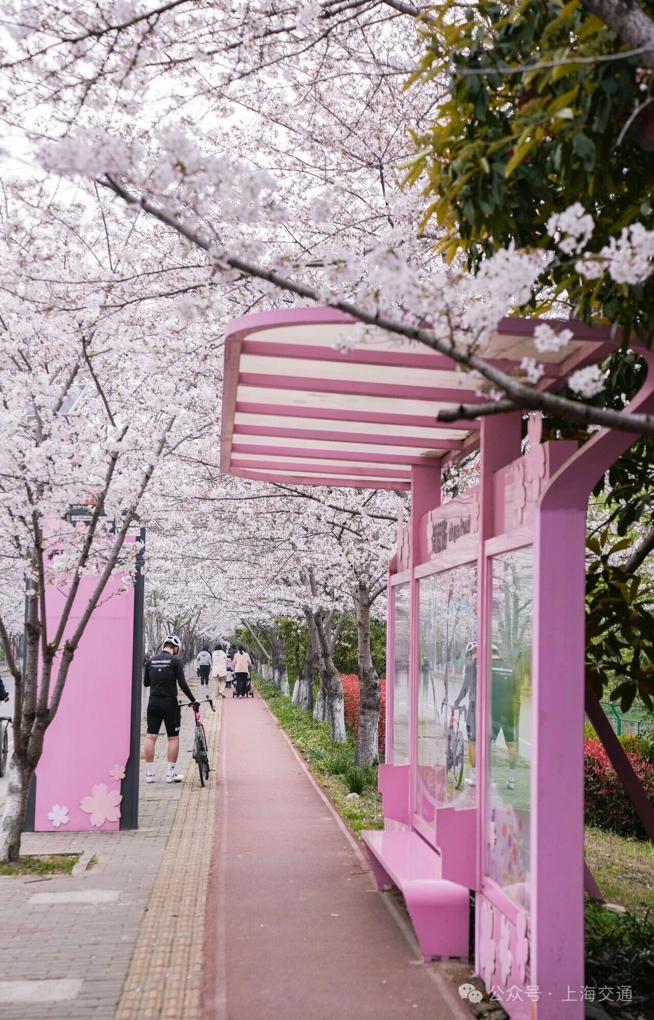 这里是浦东“樱花大道”新跃路,公交站周边的樱花已成排绽放,粉白花瓣缀满枝头,微风拂过,花瓣簌簌飘落,铺就出浪漫小径。樱花与往来公交相映成趣。无论通勤途中或闲暇漫步,都能邂逅这份贴近生活的春日温柔,感受申城街头的樱花诗意。