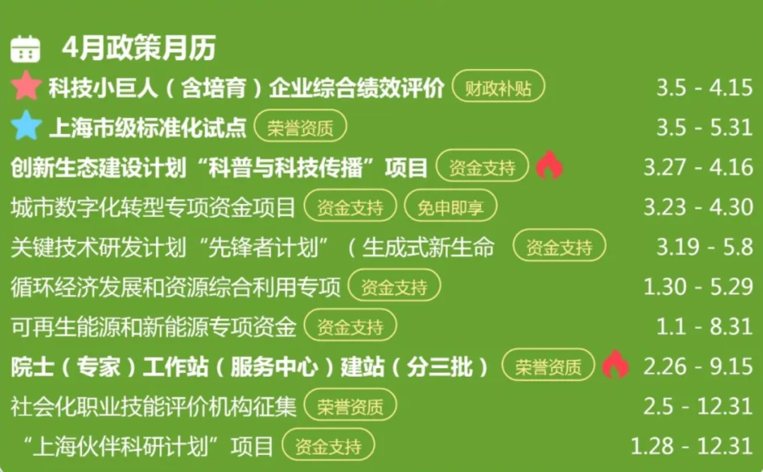 ·4月政策活动月历!上海申报类政策、益企活动预告排片请查收!