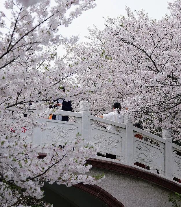 正值樱花盛开之际,茂园内游人如织,不乏身着各式服装的男女老少,在樱花树下“美美出片”。