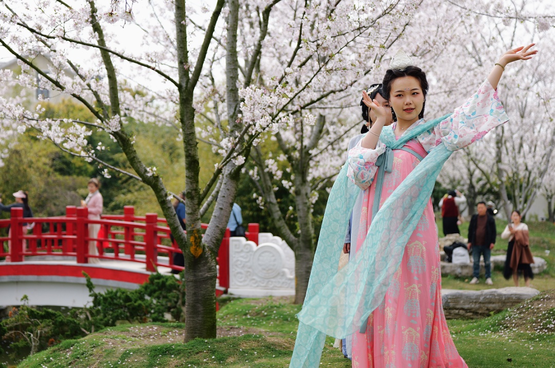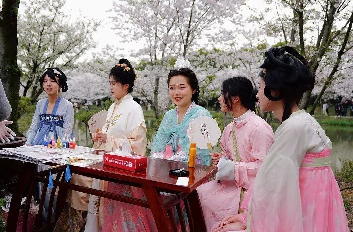 华东师范大学汉服社的学子们在体验汉服文化、非遗手作、国风舞蹈的过程中,感受“樱”你而美的乡村魅力。