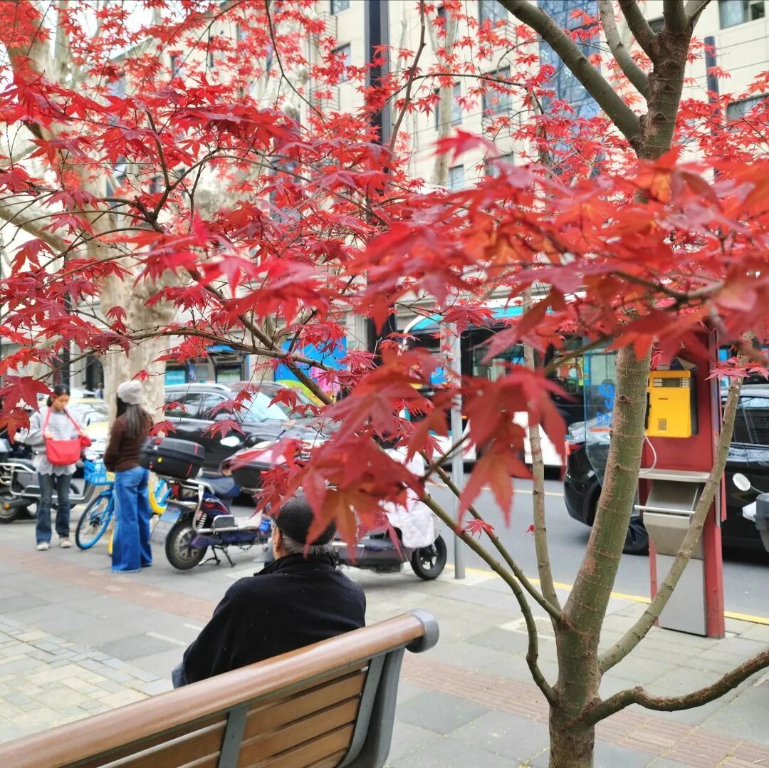红是愚园路上燃着暖意的红花
