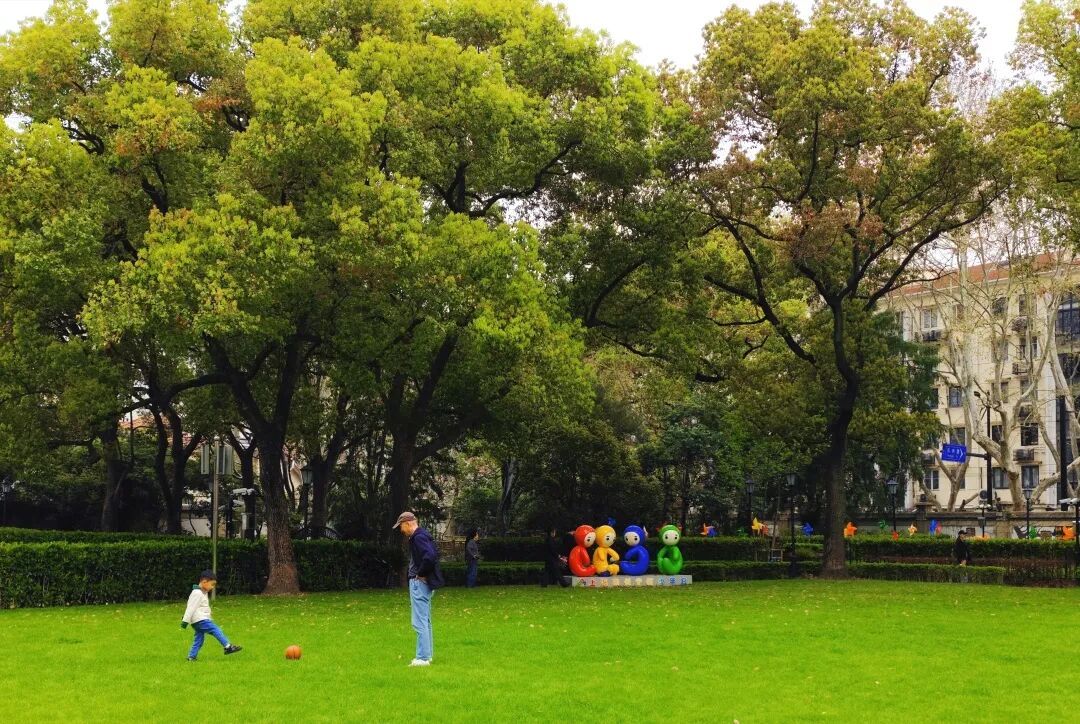 街边草坪铺展、梧桐抽出新芽