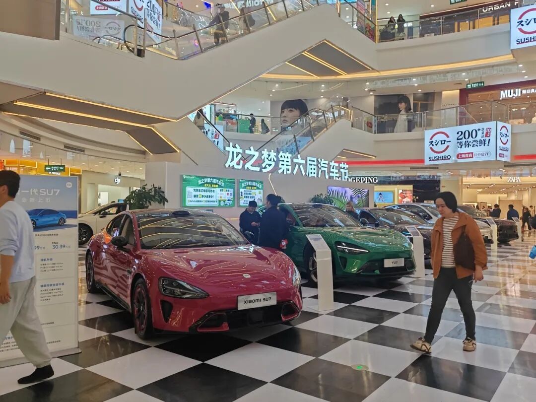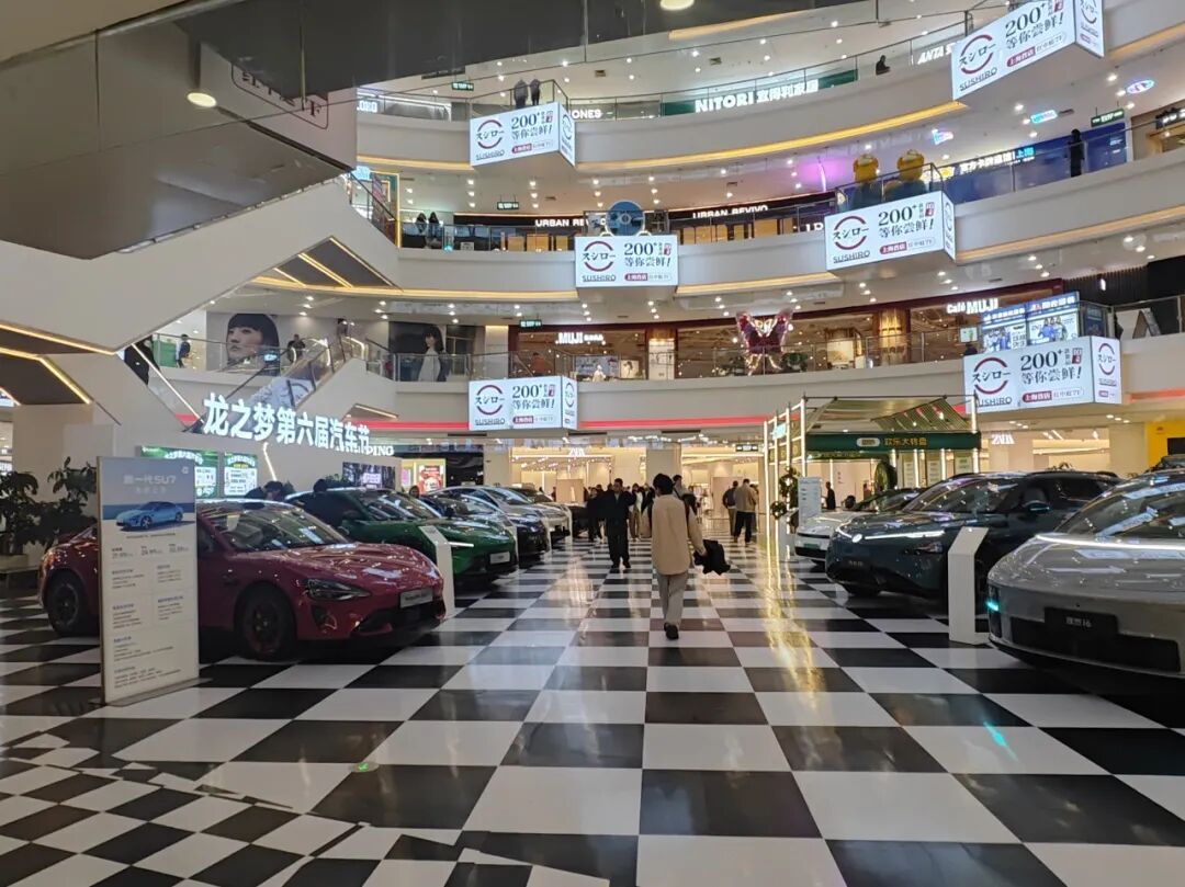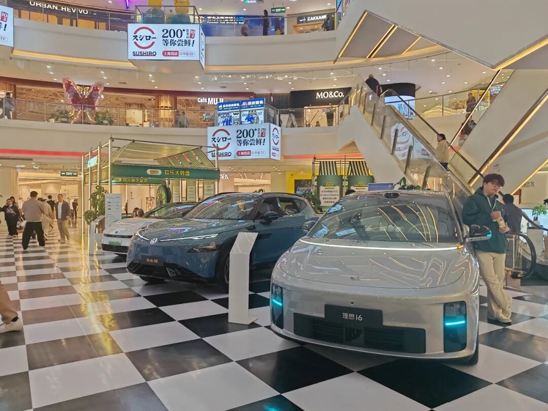 一走进商场的红中庭,入眼的便是酷炫的车展现场:小米、小鹏、理想、金标大众、华为、岚图、领克、阿维塔等十余家热门汽车品牌集体亮相。接下来的4月里,还将有不同知名品牌的汽车,在1层红中庭以及B2层的新能源汽车街区轮番亮相。