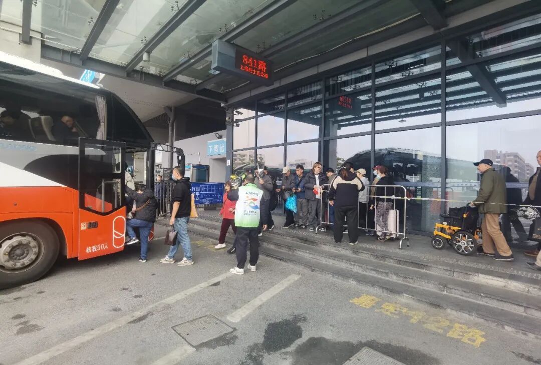 今天(4月4日)上午8点,记者在嘉定客运中心看到,清竹园和长安墓园的短驳专线上客点前已有市民排队候车。专线车一辆接一辆驶入站内,人满即走,现场秩序井然。
