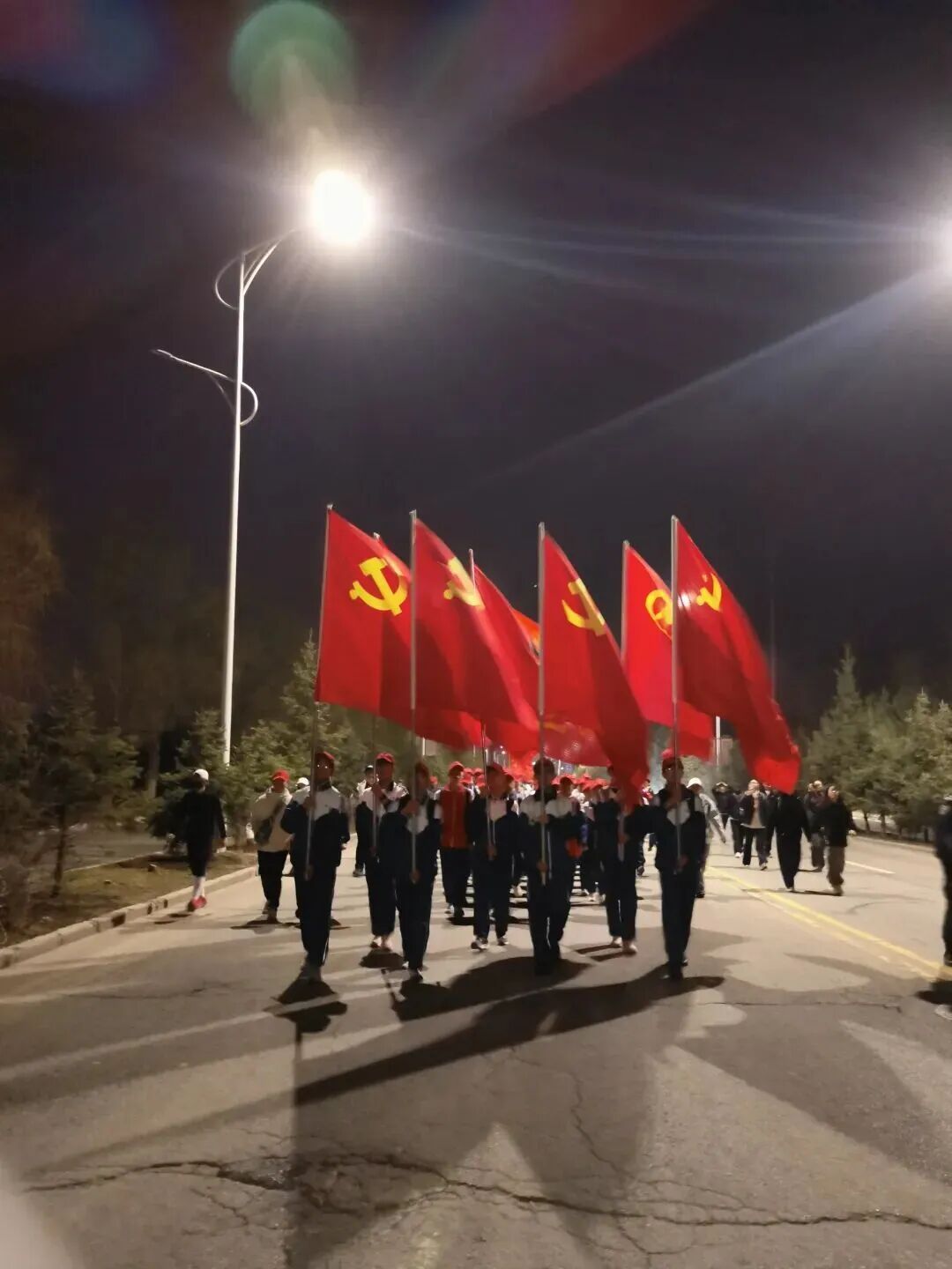 4月3日凌晨5时,天尚未破晓,3000余名师生与社会人士早已列队肃立,在“出发”的号令中,踏破了黎明前的寂静。这支特殊的队伍,目标明确——徒步百里之外的彭阳县任山河烈士陵园。108里的崎岖山路,是他们用脚步丈量信仰的征程,更是连接历史烽烟与当下青春的红色纽带。