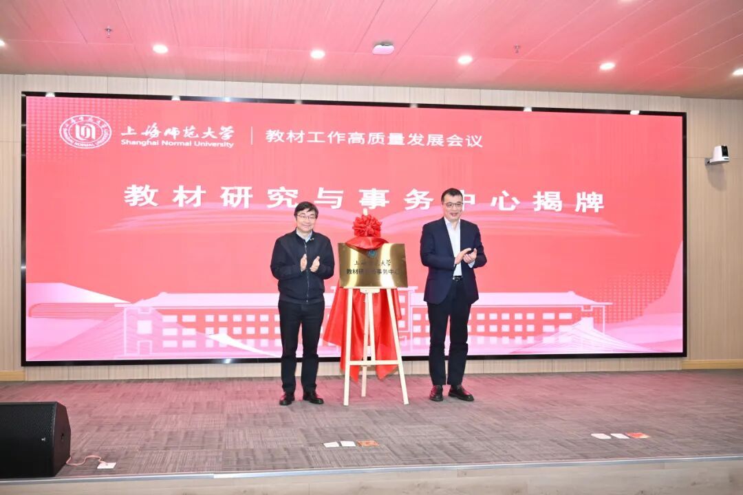 “上海师范大学教材研究与事务中心”同时揭牌。该中心将作为学校教材建设实体化运行的核心枢纽和智库高地,承担规划管理、理论研究、质量监测等职能。