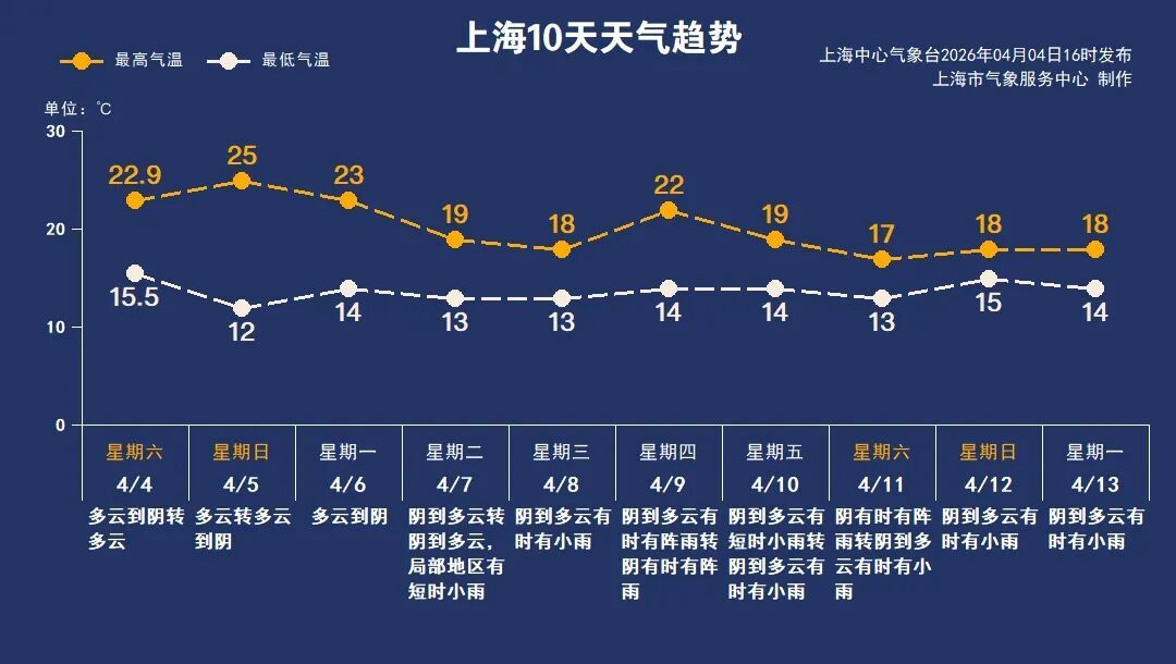 申城今天多云到阴天气为主。阳光时隐时现,气温回升,全市最高气温多超过20℃大关,市区徐家汇站22.9℃,午后走走还是有些热的~