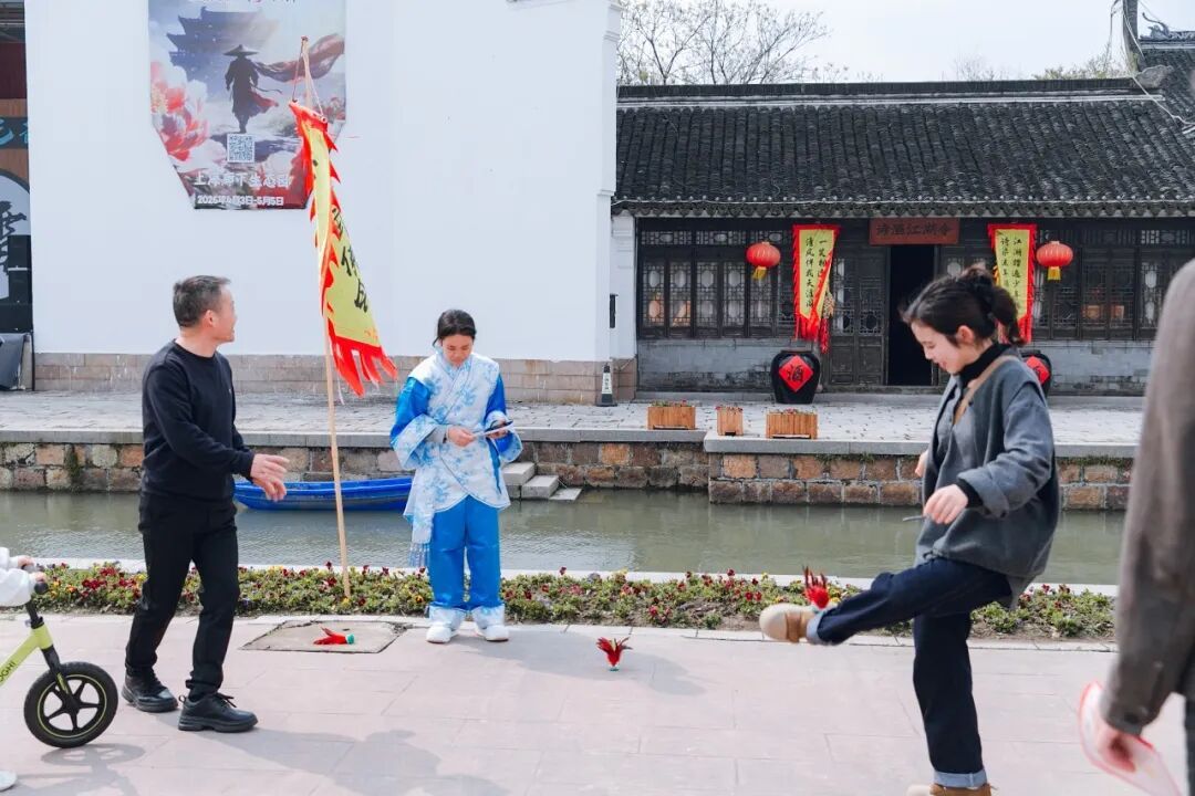 每逢整点,廊下大舞台前便聚满游客。大家先通过“文斗飞花令”小试身手,随后纷纷登台“以舞会友”。不少年轻游客一展舞姿,在赢得“银票”奖励的同时,也尽情放松身心,享受假日闲暇。许多游客专程为沉浸式武侠体验而来,现场一位张女士表示:“之前在外省玩过类似主题,但这次在廊下又有很多不一样。正好利用清明假期来放松一下,感觉特别解压。”